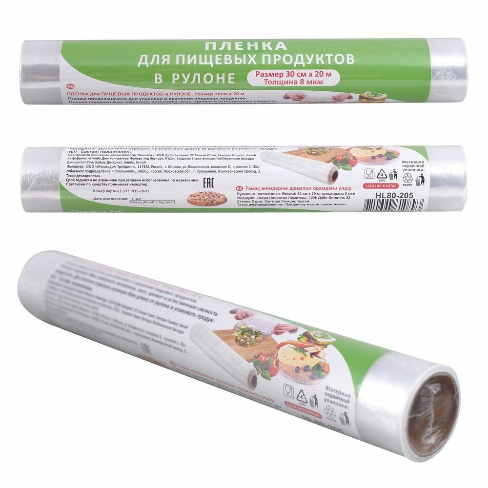 Плёнка для хранения пищевых продуктов, полиэтилен, 20 м ширина 30 см. интересное: