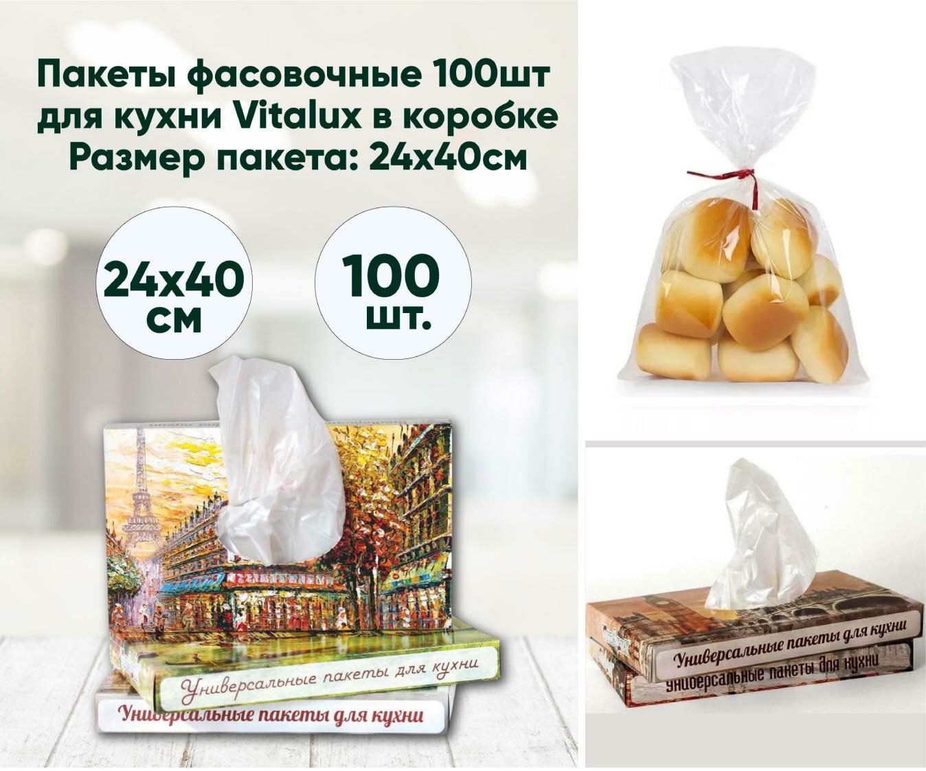 Купить Пакеты фасовочные для продуктов Vitalux 100шт, полиэтиленовые 24 х 40 см в коробке