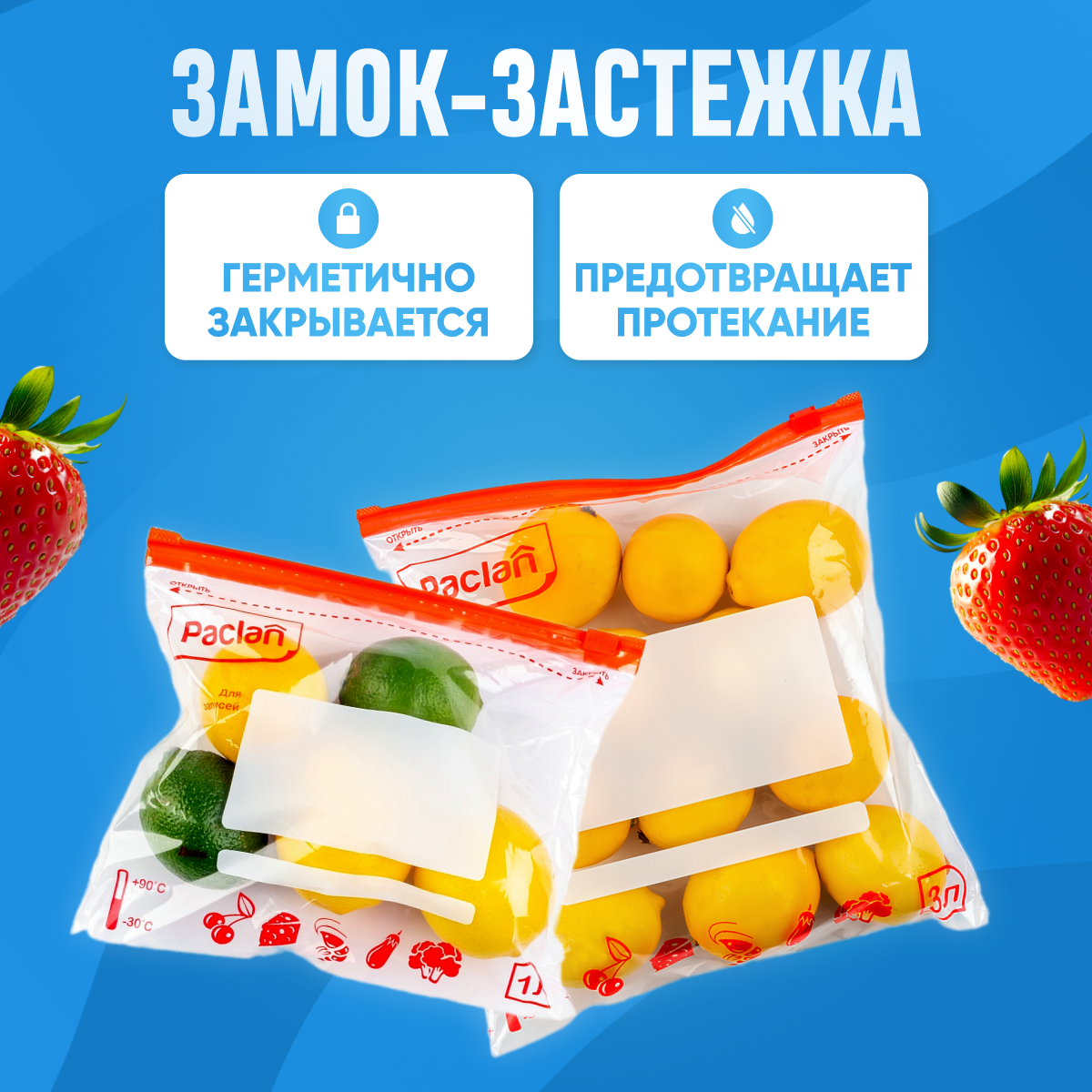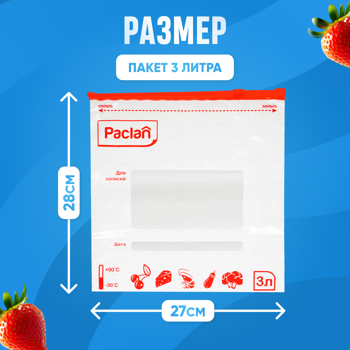 Набор пакетов Paclan с замком-застежкой, 22х18 см. 1 л. 15 шт. и 27х28 см. 3 л. 10 шт. интересное: