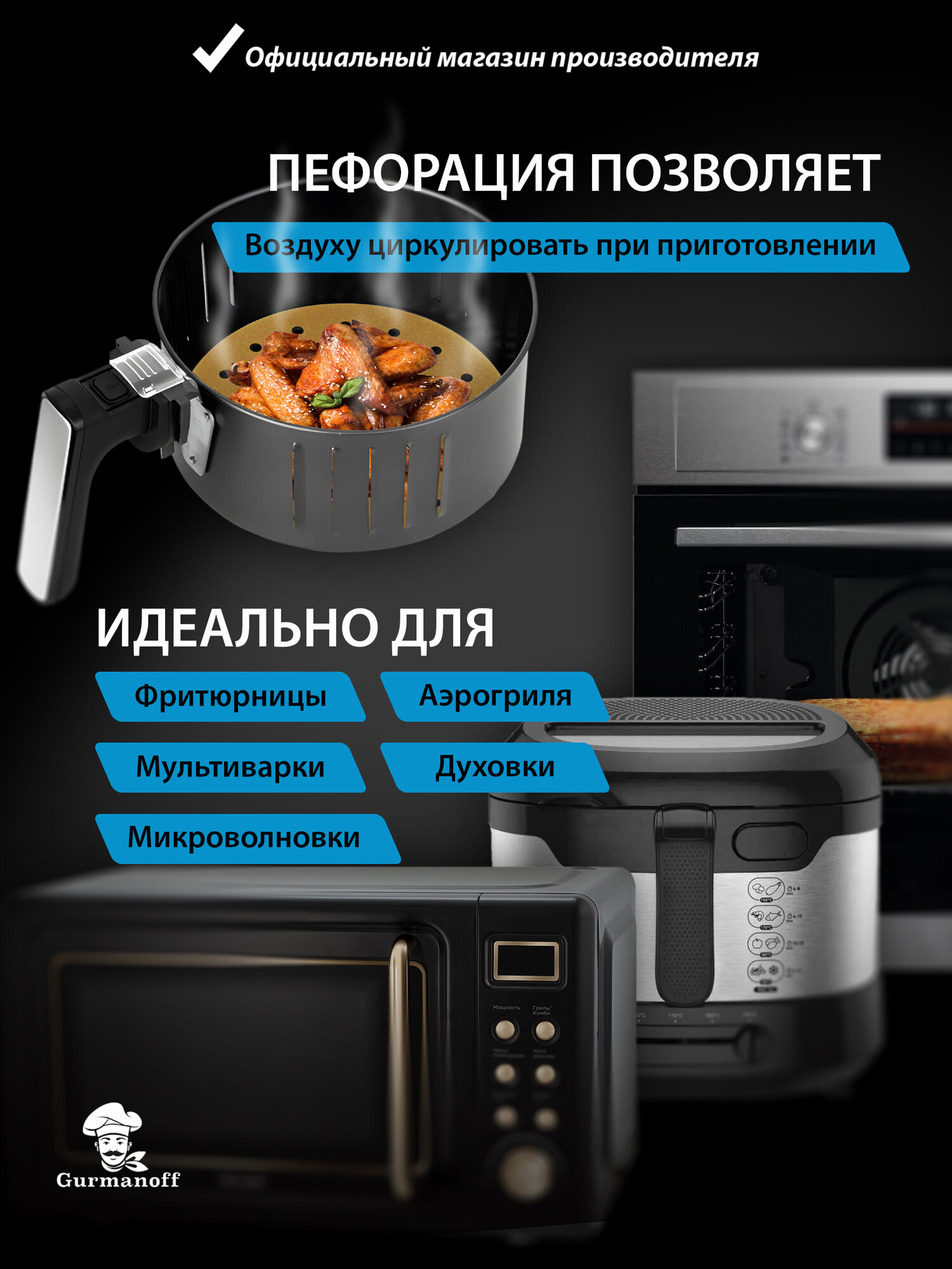 Бумага для выпечки силиконизированная / пергамент для аэрогриля в листах круглый 20 см интересное: