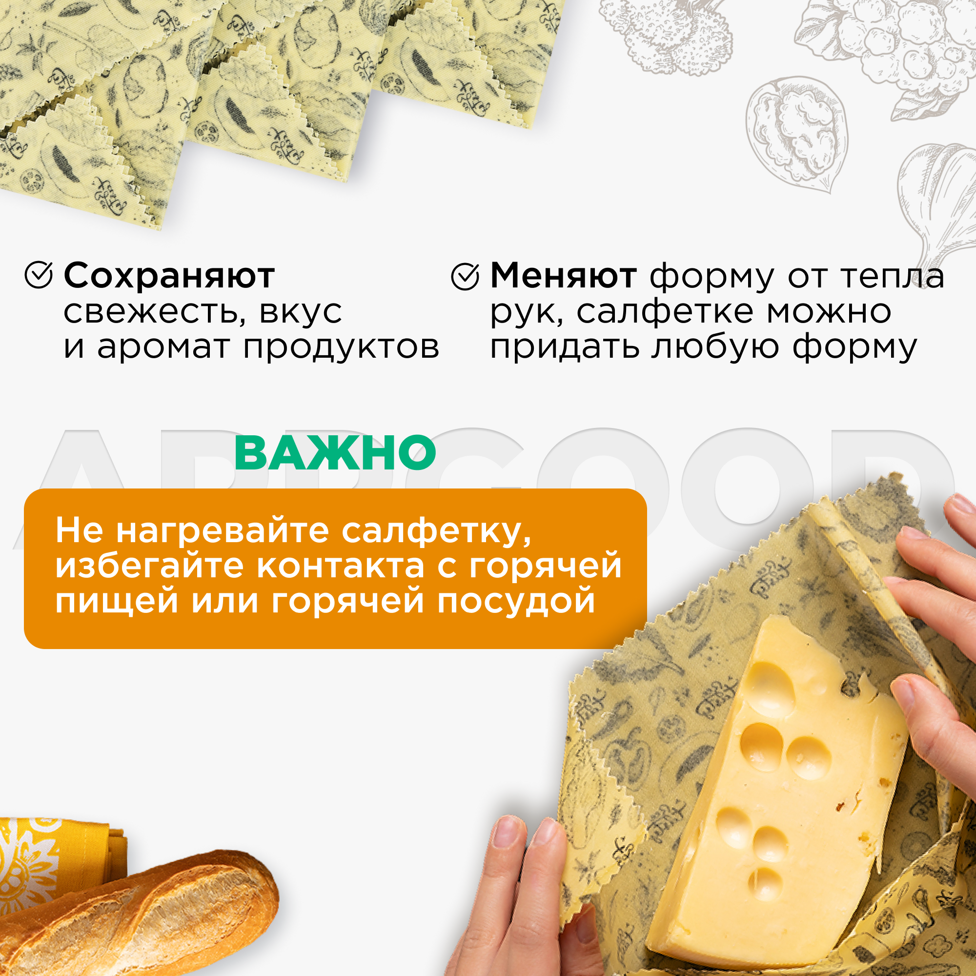 Восковые салфетки для продуктов многоразовые интересное: