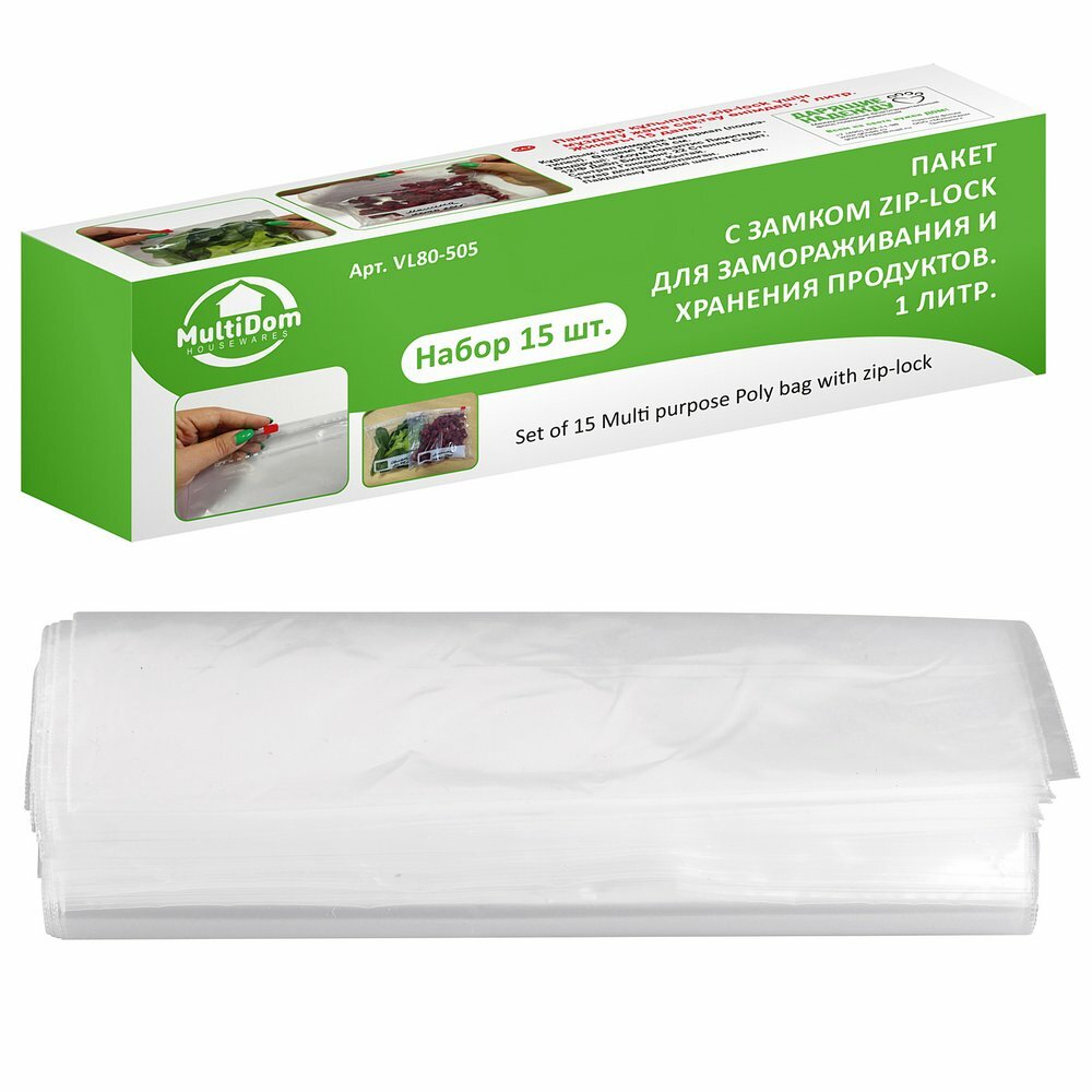 Пакет с замком zip-lock для замораживания и хранения продуктов. 1 литр. Набор 15 шт интересное: