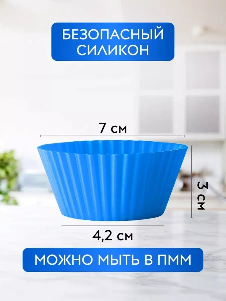 Купить Формы для выпечки кексов, маффинов, силиконовые, 12 шт, цвет синий