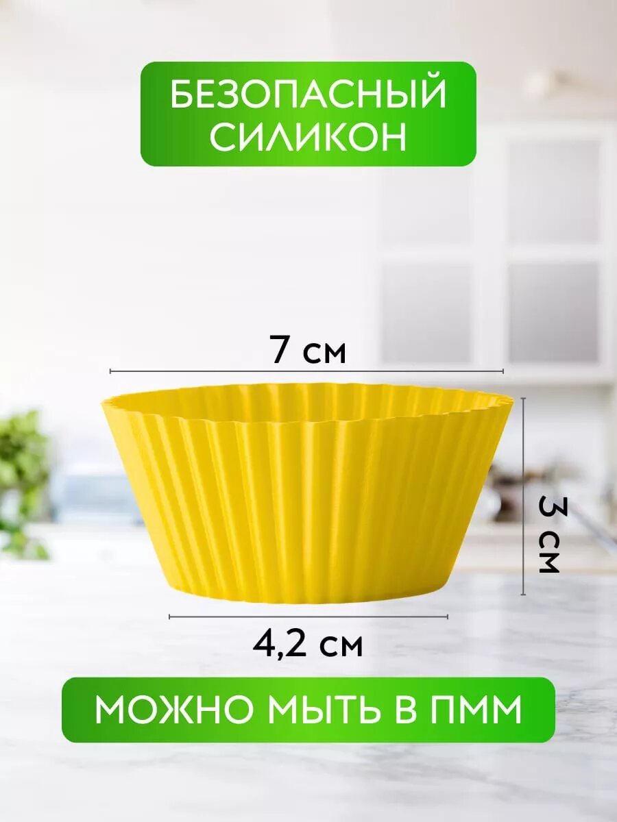Формы для выпечки кексов, маффинов, силиконовые, 12 шт, цвет желтый