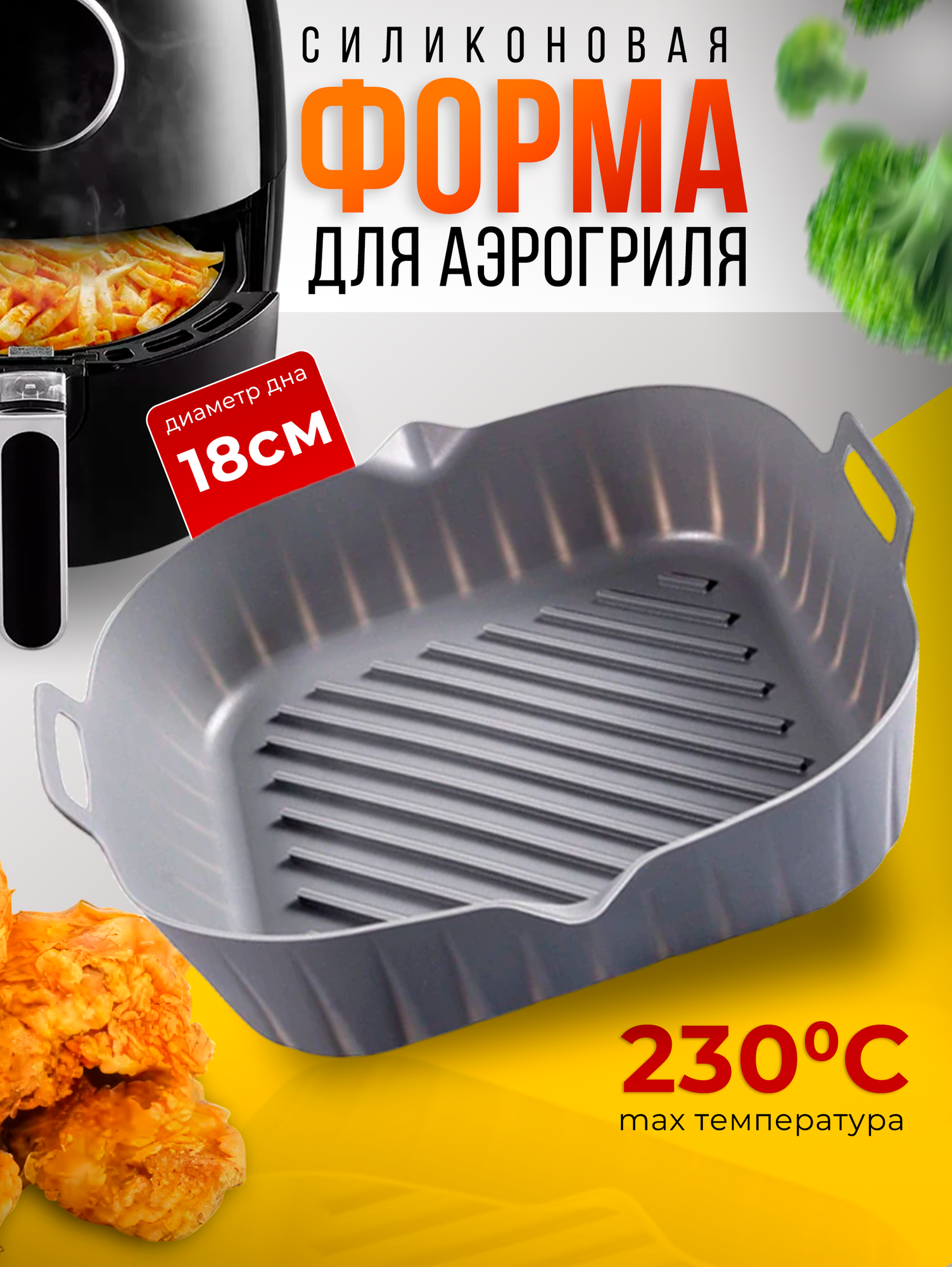 Силиконовая форма квадратная для аэрогриля запекания, выпечки пирога, бисквита, диаметр 22 см, серая интересное: