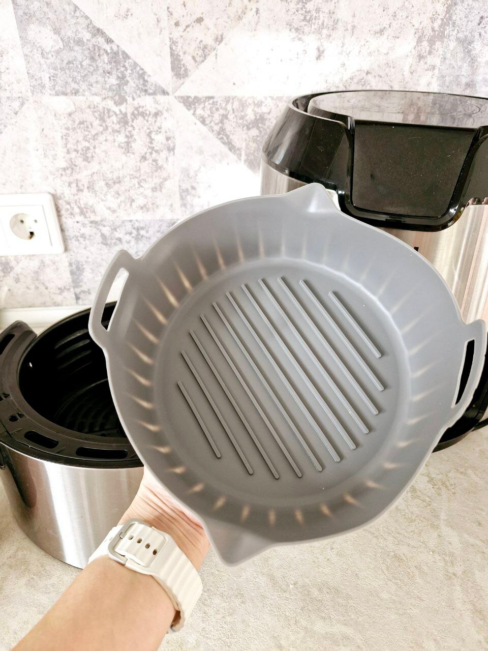 Силиконовая форма круглая для аэрогриля запекания, выпечки пирога, бисквита, диаметр 21 см, серая интересное: