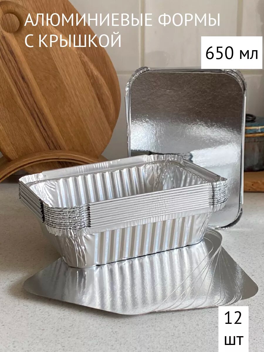 Алюминиевые формы для запекания 650 мл с крышкой, 12 шт, DOUBLE GREEN интересное: