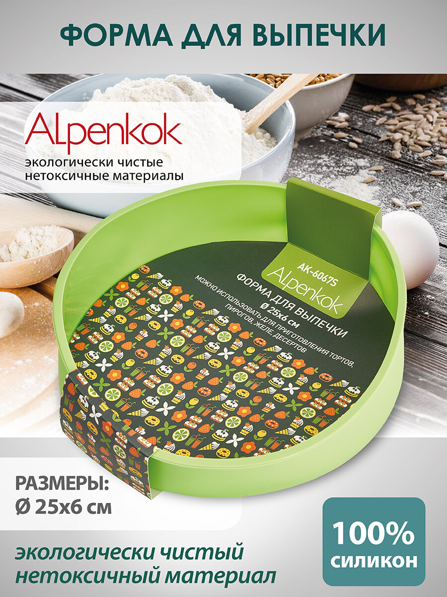 Силиконовая форма для выпечки Alpenkok AK-6067S, Ø25 см, цвет зеленый интересное: