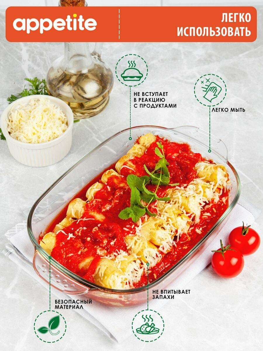 Форма стеклянная прямоугольная 22x14x5см 0,7л с ручками ТМ Appetite интересное: