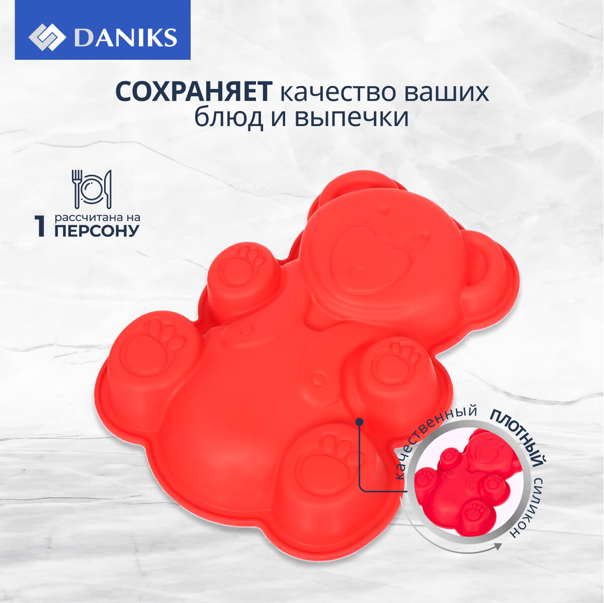 СохранитьСиликоновая форма для выпечки фигурная,16.5х20 см, красная, Daniks, Медведь интересное:
