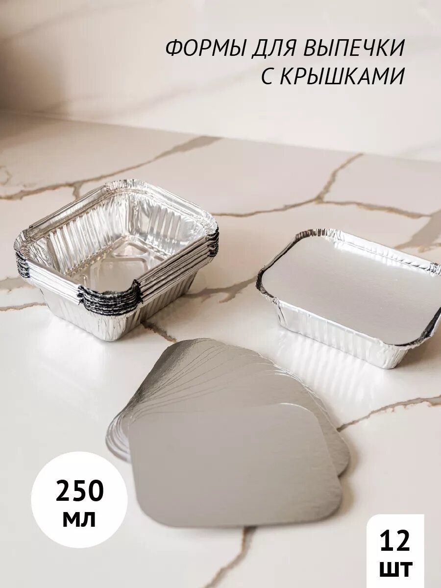 Алюминиевые формы для запекания 250 мл с крышкой, 12 шт, DOUBLE GREEN интересное: