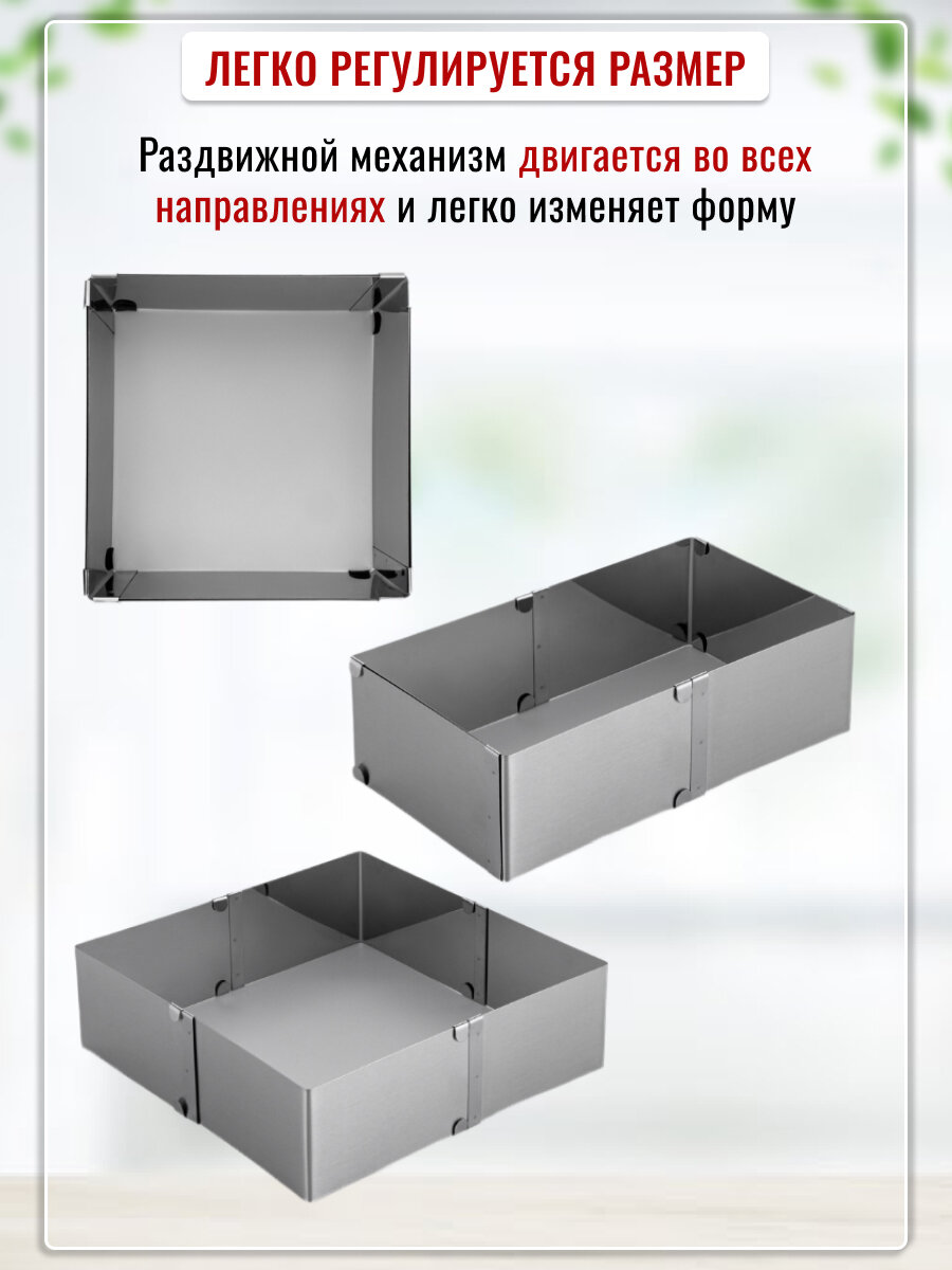 Форма разъемная для выпечки, квадратная, с регулировкой размера 16-28 см, высота 8,5 см