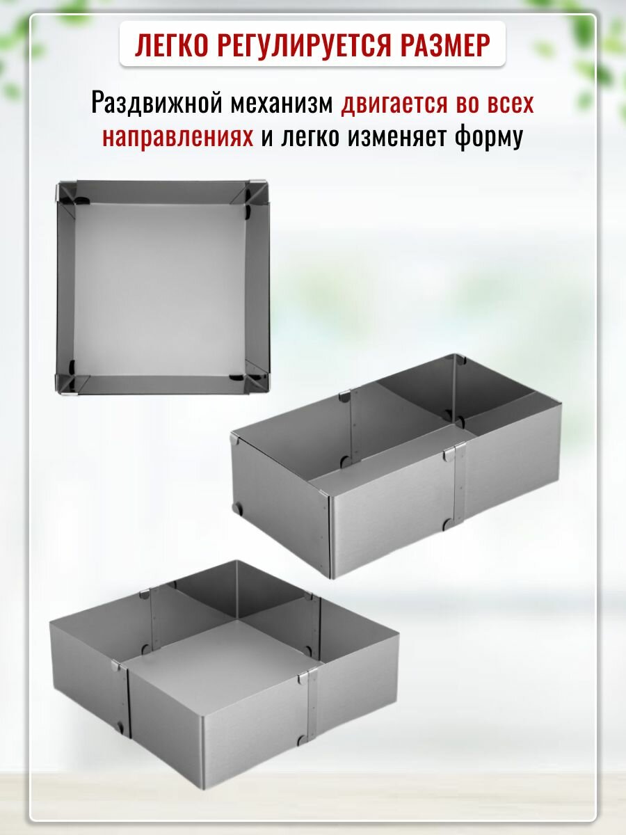 Форма разъемная для выпечки, квадратная, с регулировкой размера 16-28 см, высота 8,5 см интересное:
