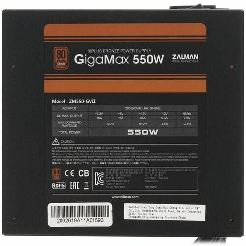 Блок питания ZALMAN GigaMax (GVII) 550W ZM550-GVII