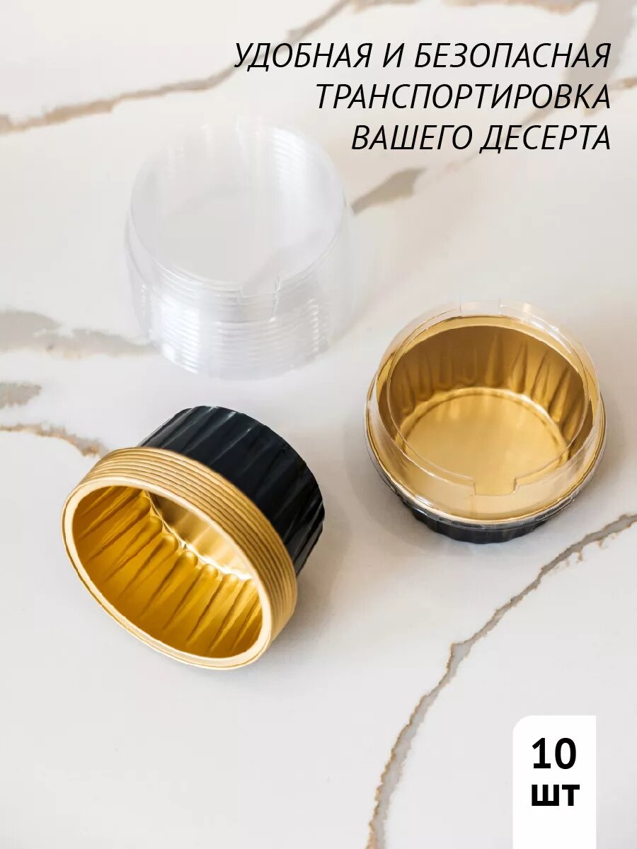 Круглые формы для выпечки капкейков и пирожных с крышкой, 10 шт Черно-золотые интересное: