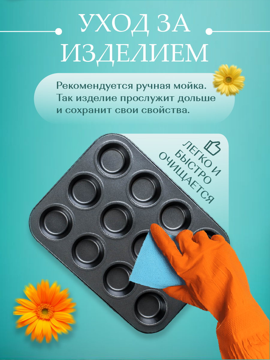 Форма для выпечки кексов 12 ячеек / углеродистая сталь с антипригарным покрытием 35х26х3 см интересное: