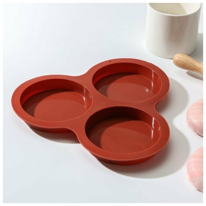 Купить Форма силиконовая для выпечки Доляна «Круг», 23×19,5 см, 3 ячейки, цвет микс