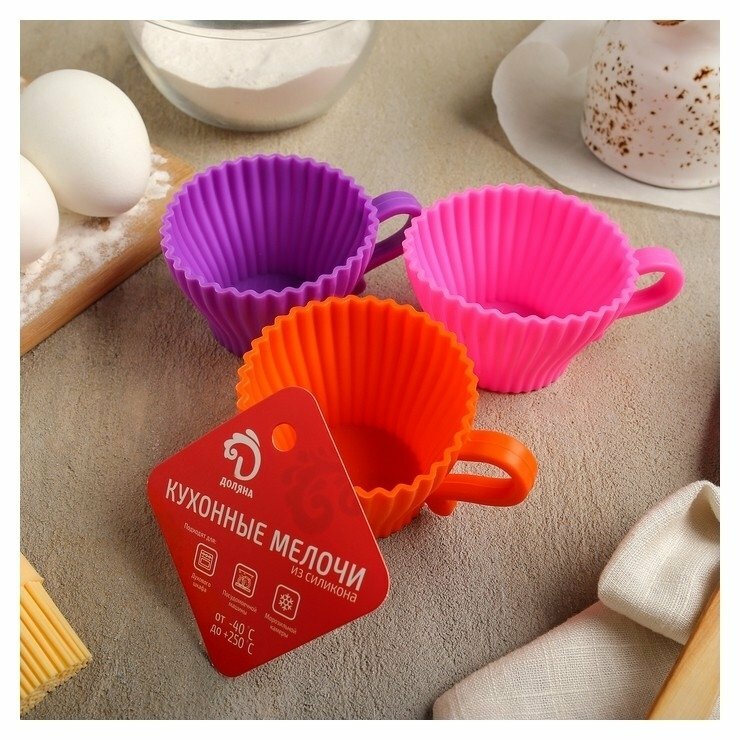 Форма силиконовая для выпечки Доляна «Круг», 23×19,5 см, 3 ячейки, цвет микс