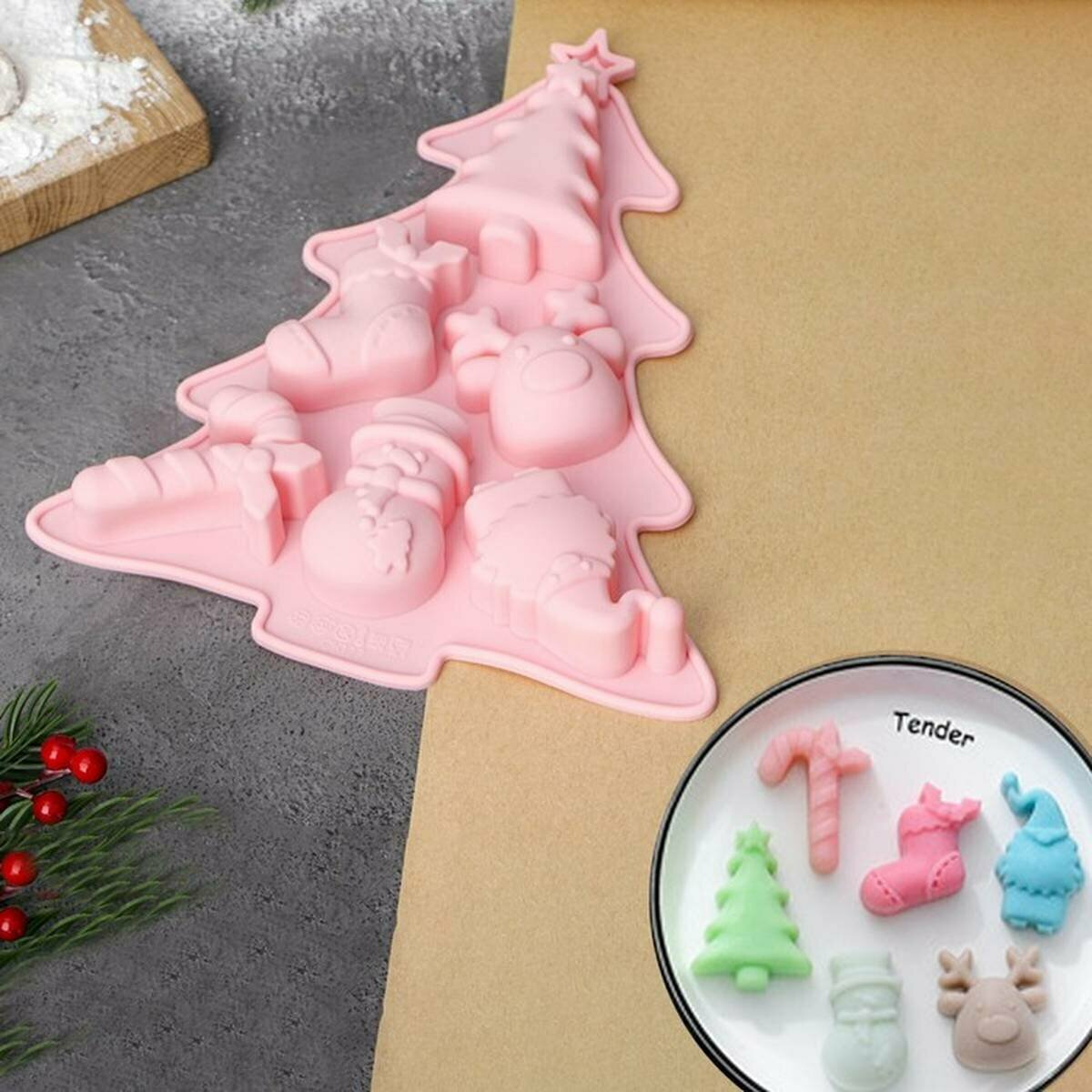 Купить Форма силиконовая для выпечки «Новогоднее настроение» Доляна, новогодняя