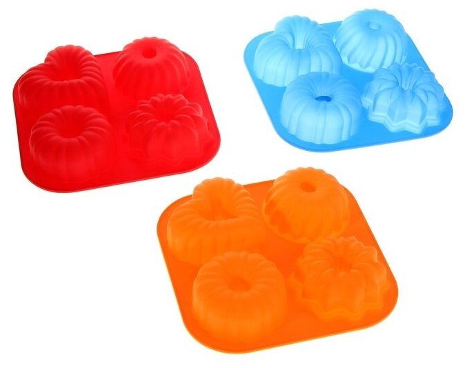 Купить Форма для выпечки силиконовая Доляна «Немецкий кекс», 17×17 см, 4 ячейки, цвет микс