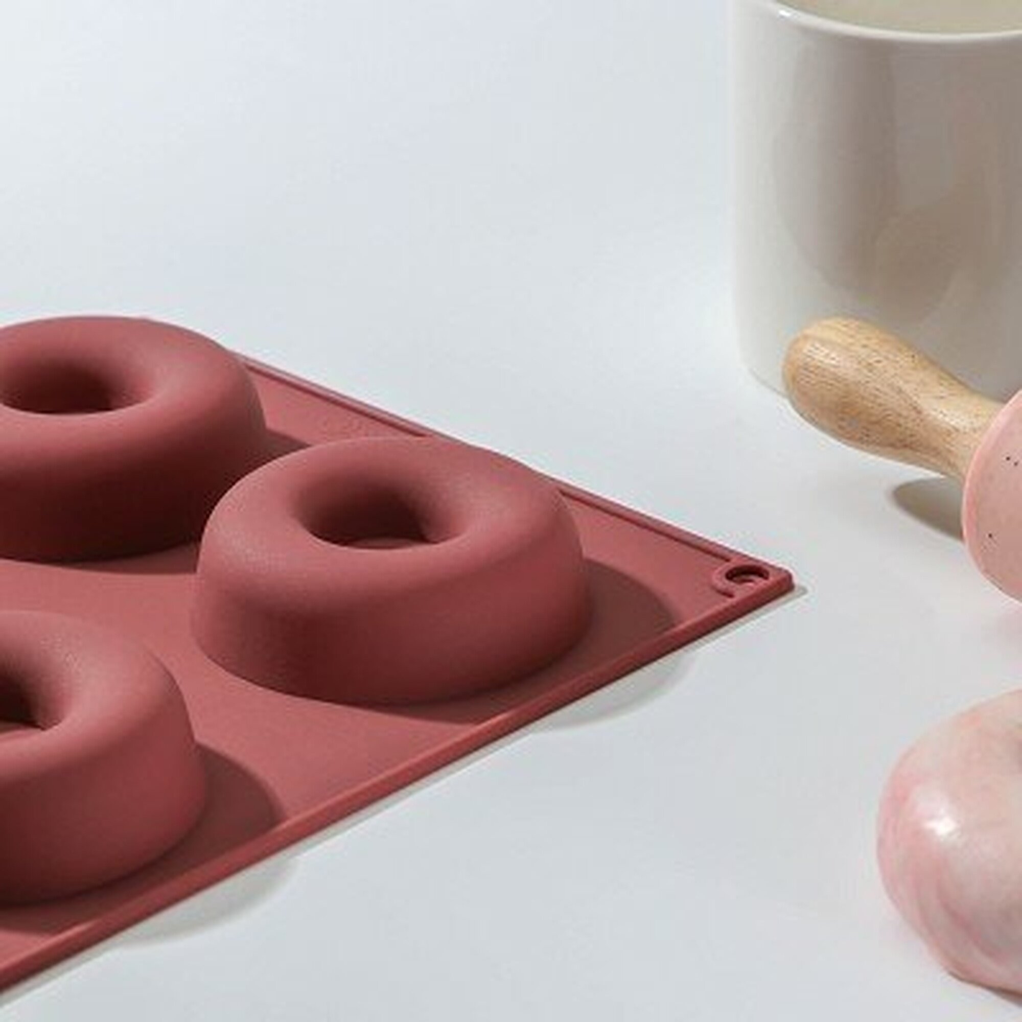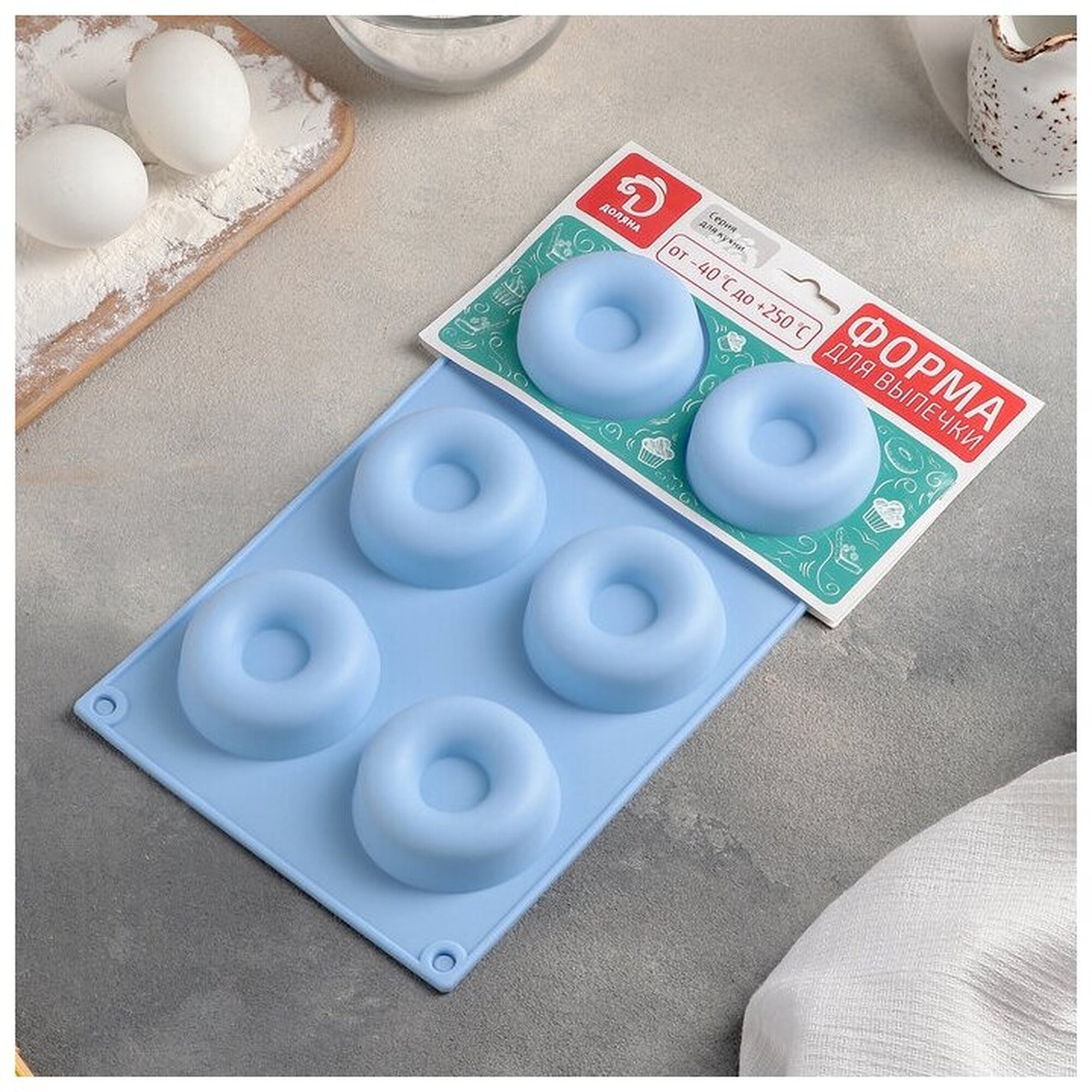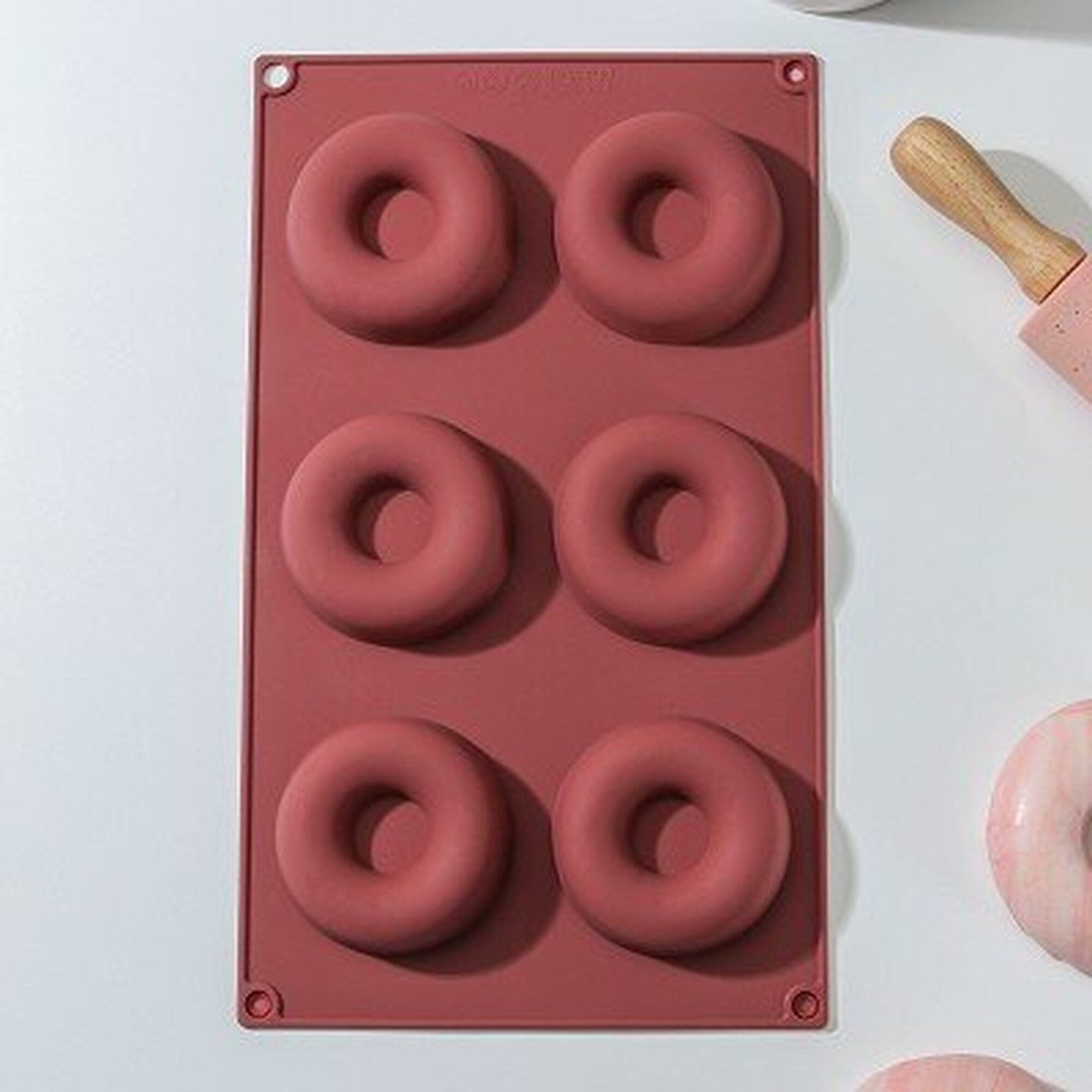 Купить Форма силиконовая для выпечки Доляна «Сладости. Пончики», 29×17 см, 6 ячеек, d=6,8 см, цвет микс