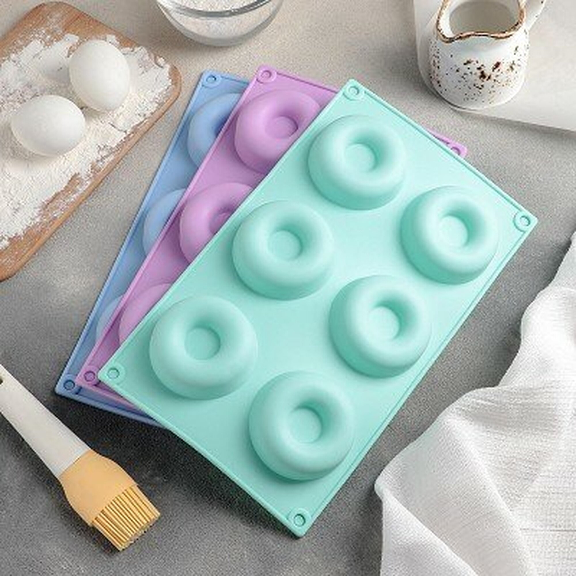 СохранитьФорма силиконовая для выпечки Доляна «Сладости. Пончики», 29×17 см, 6 ячеек, d=6,8 см, цвет микс интересное: