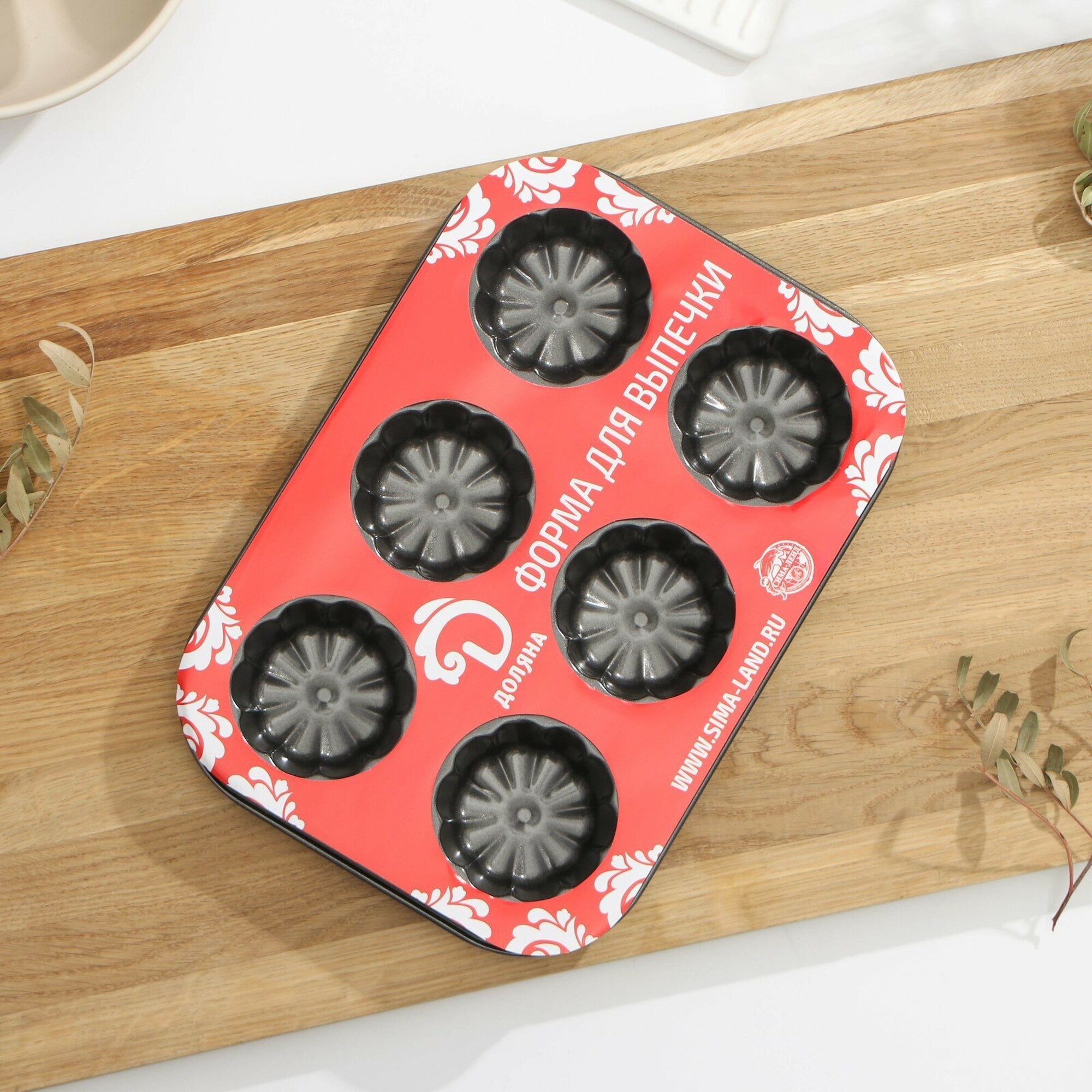Форма для выпечки ТероПром 4469434 Доляна «Золотая рыбка», 24×16,5 см, 6 ячеек (9,5×4,5×2 см), цвет микс, 4469434