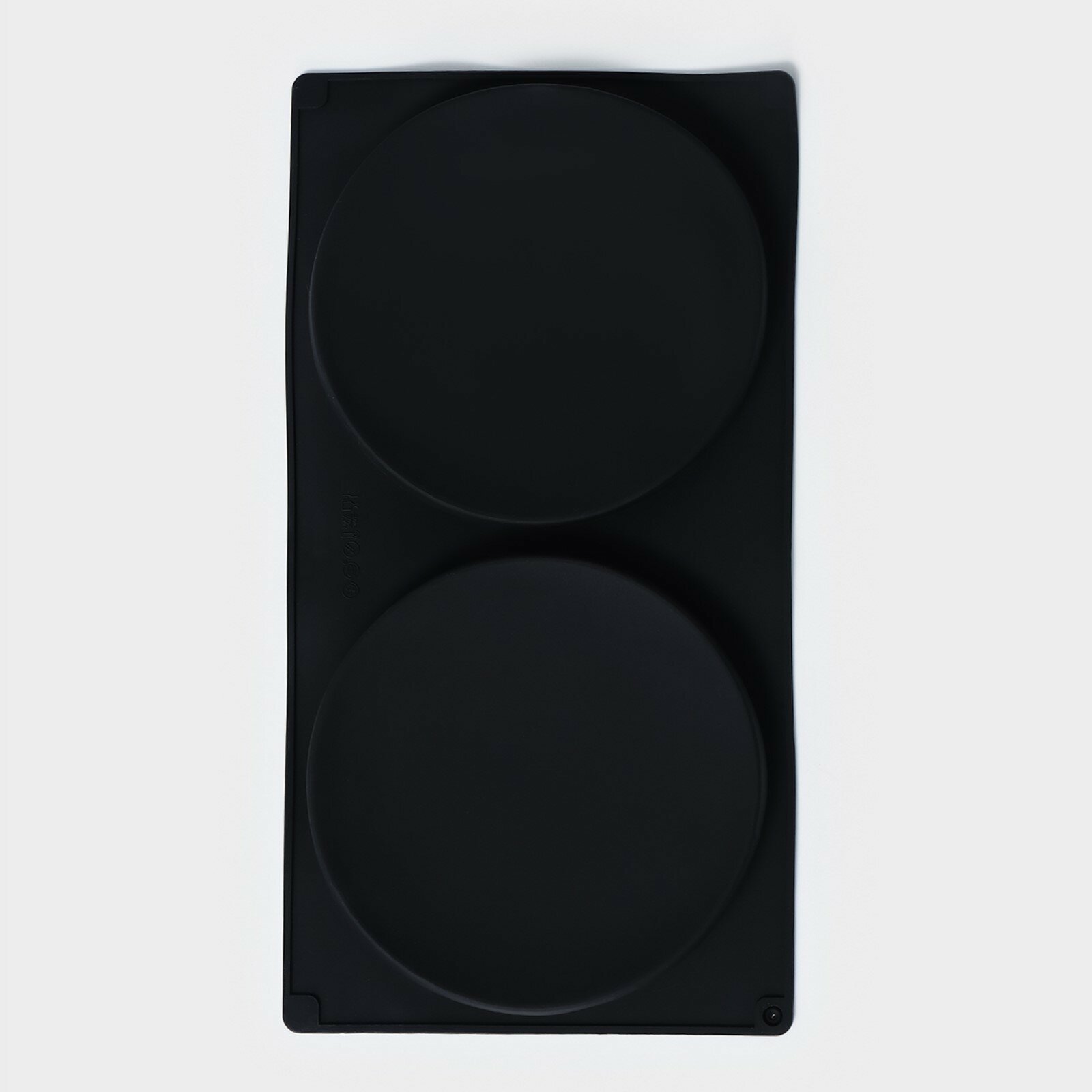 ! Форма силиконовая для выпечки «Бискотто», 2 ячейки, 35×19,5×1,7 см, d=16 см, цвет чёрный
