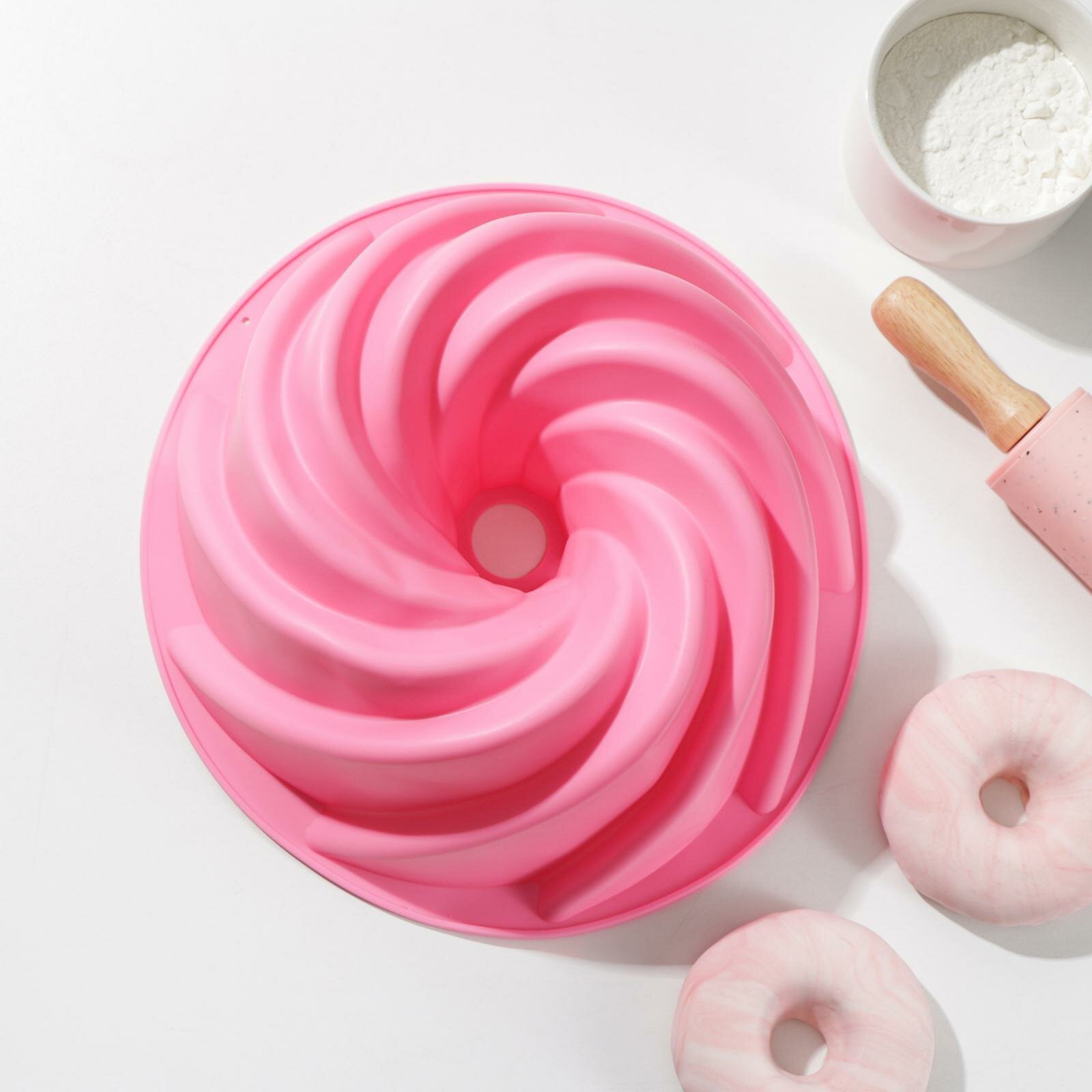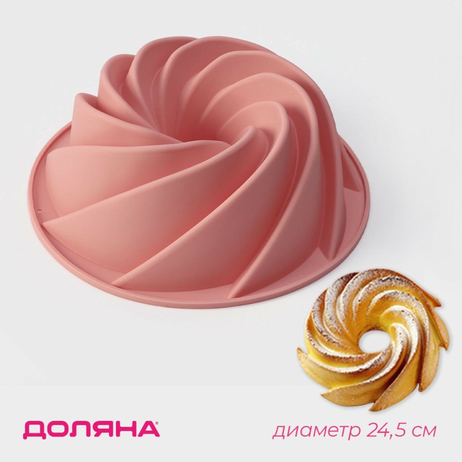 Купить Форма силиконовая для выпечки Доляна «Немецкий кекс. Вихрь», d=24,5 см, цвет розовый, 1687522