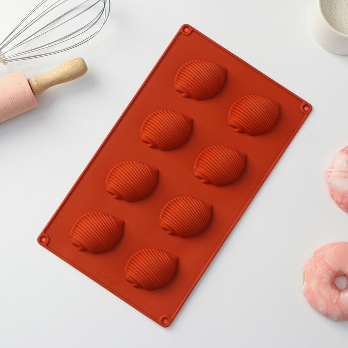 Купить Форма силиконовая для выпечки Доляна «Ракушка», 29×17×2 см (6×4,5×2 см), 8 ячеек, цвет коричневый
