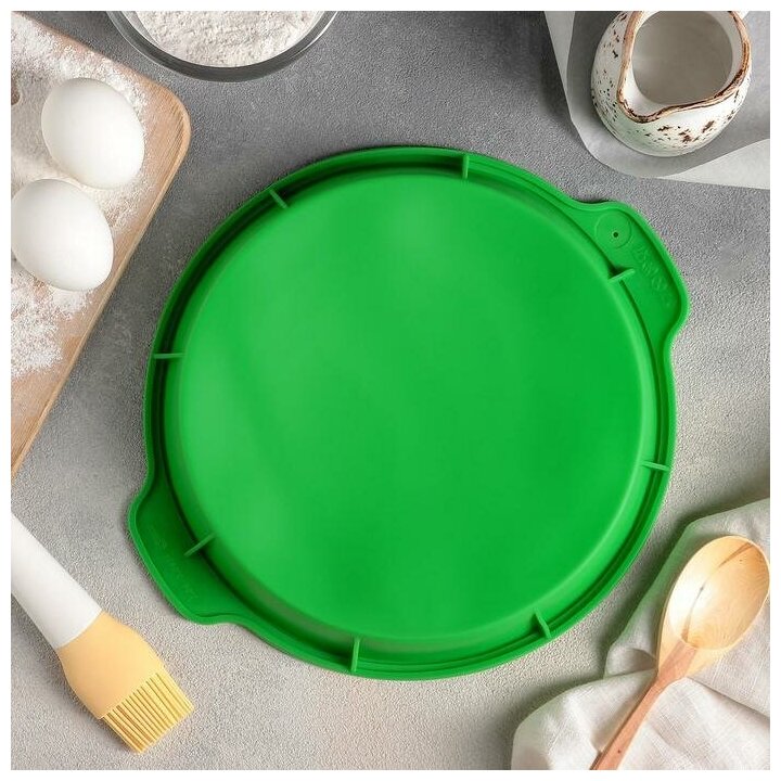 Форма для выпечки с ручками Доляна «Круг», силикон, 27×24×6 см, внутренний диаметр 22 см, цвет микс