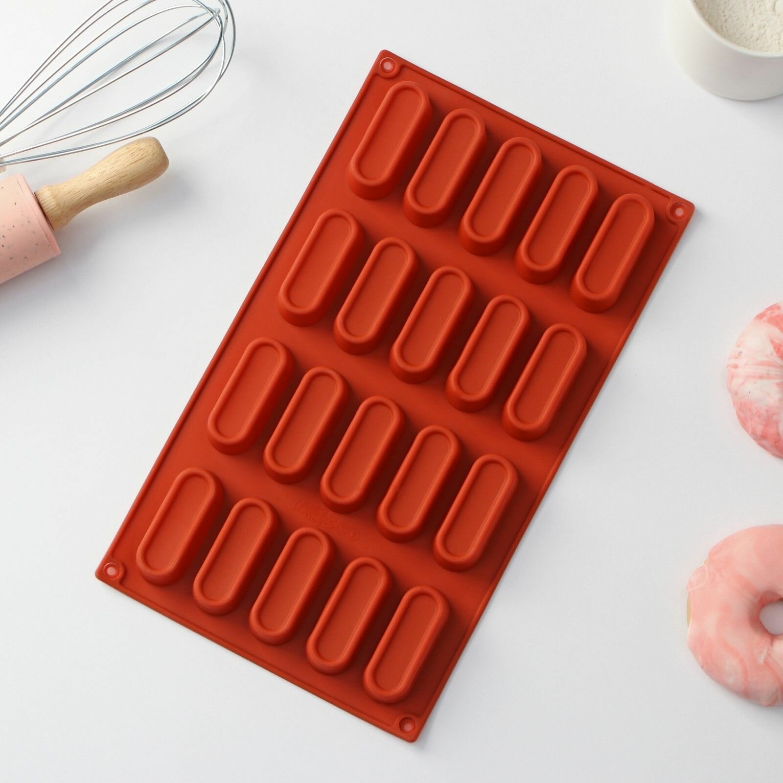Купить Форма для выпечки Доляна Сладости. Эклер , силикон, 29 17 2 см (5,8 2,3 2 см), 20 ячеек, коричневая