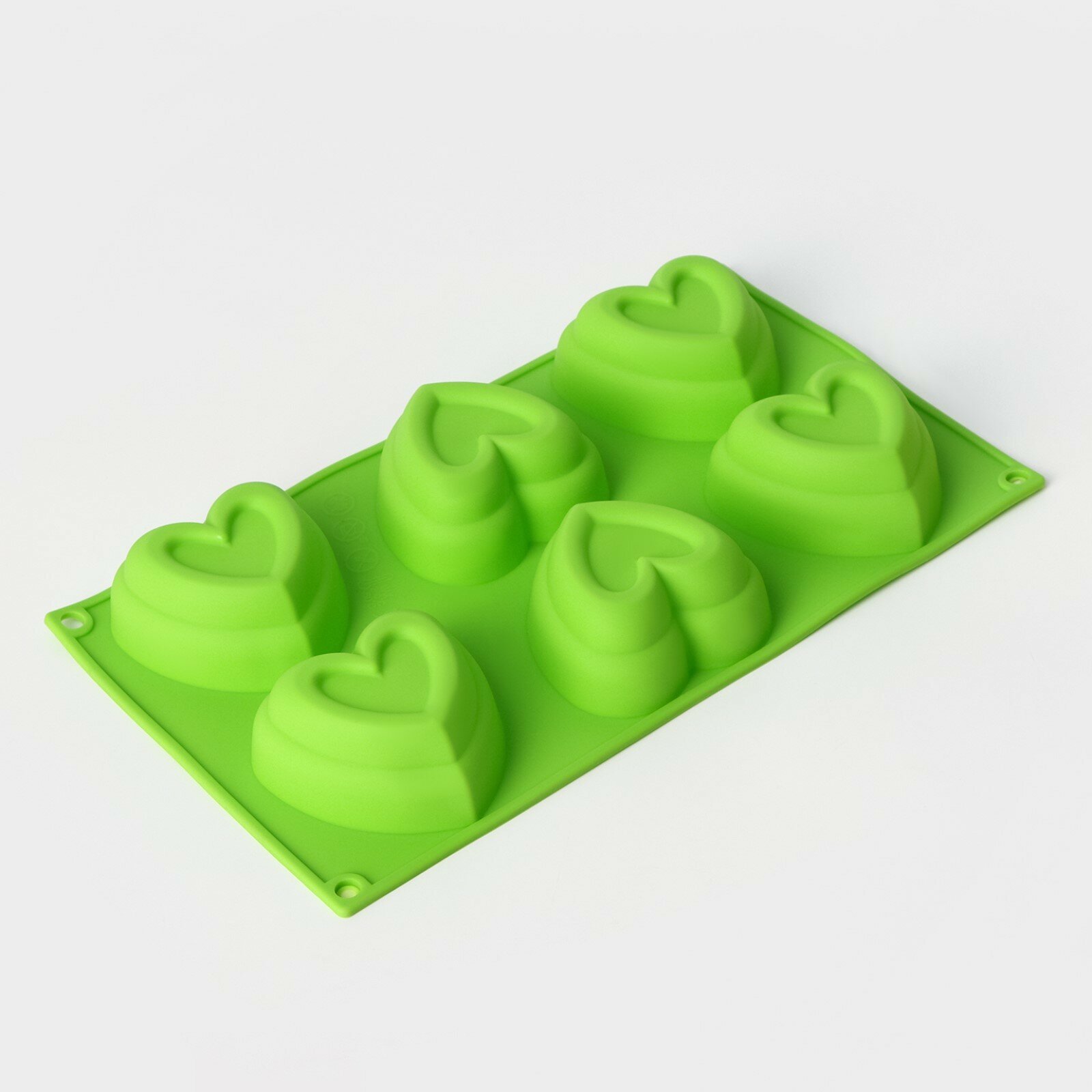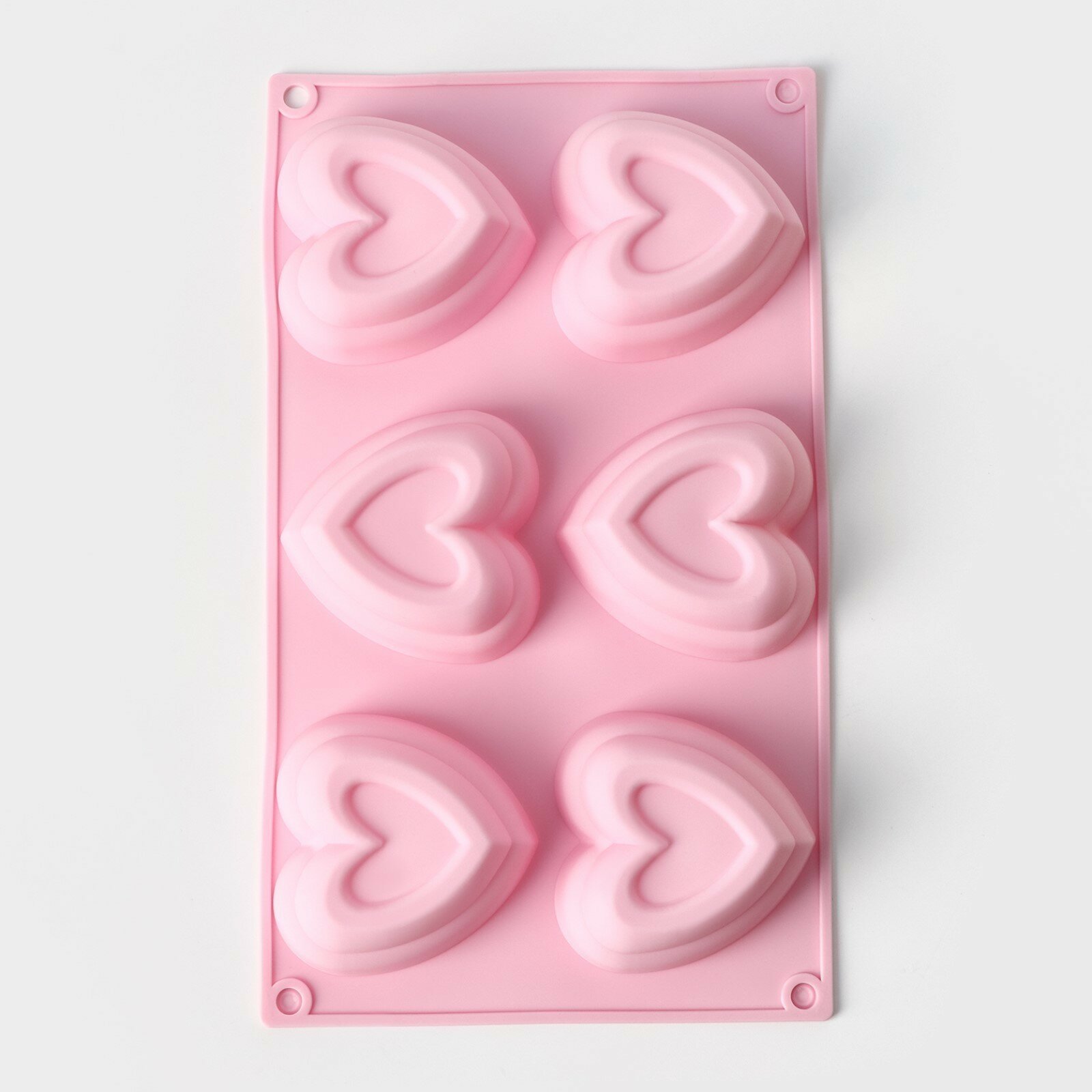Купить Форма для выпечки Доляна Сердце в сердце , силикон, 17,5 30 см, 6 ячеек (8 8 см), цвет розовый