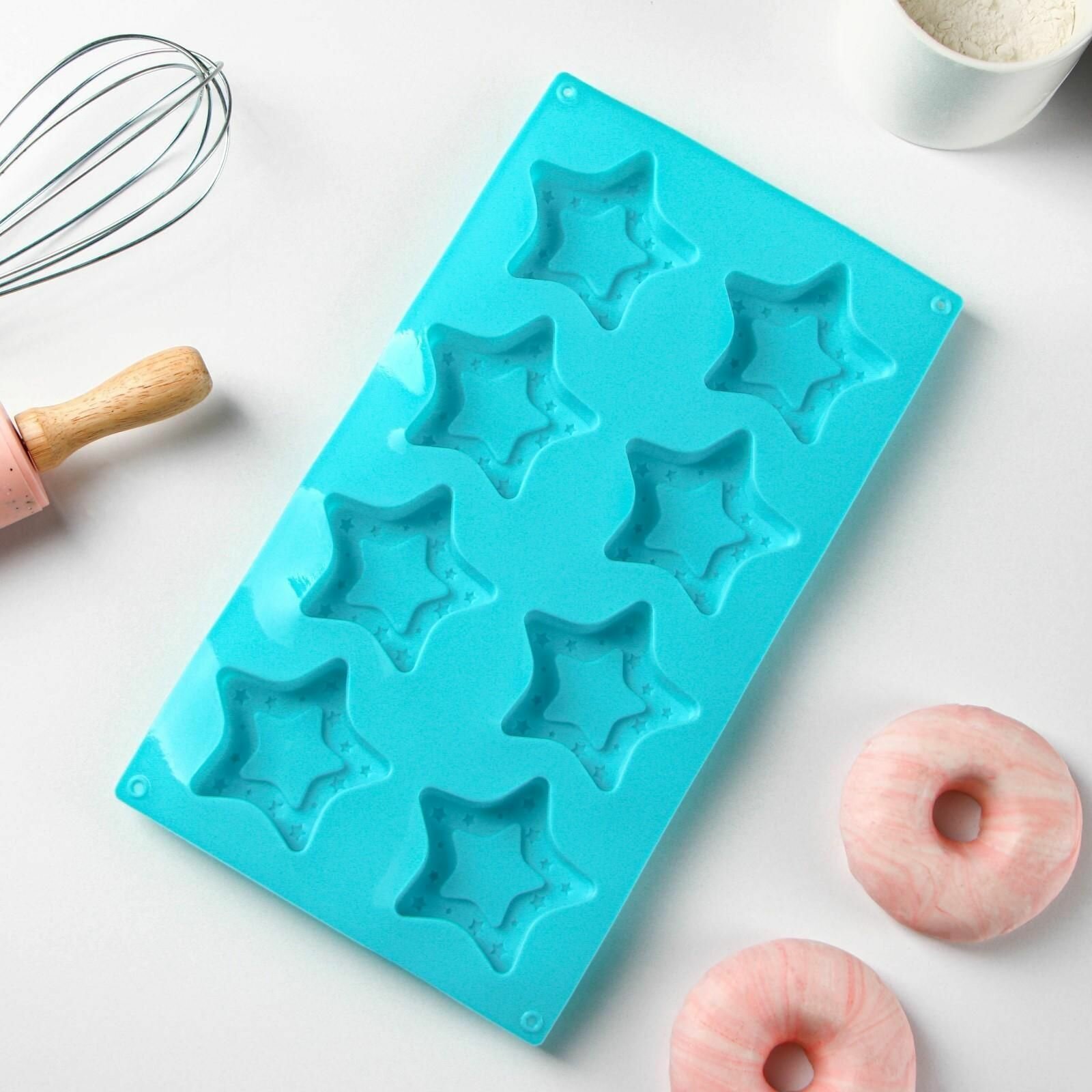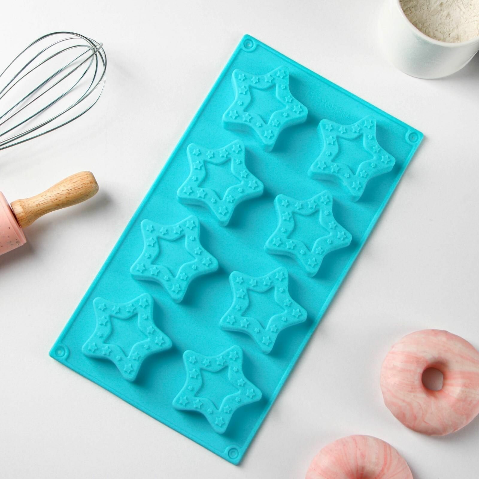 Купить Форма силиконовая для выпечки Звёздочки, 8 ячеек, 29x16x2 см, глубина 1,7 см