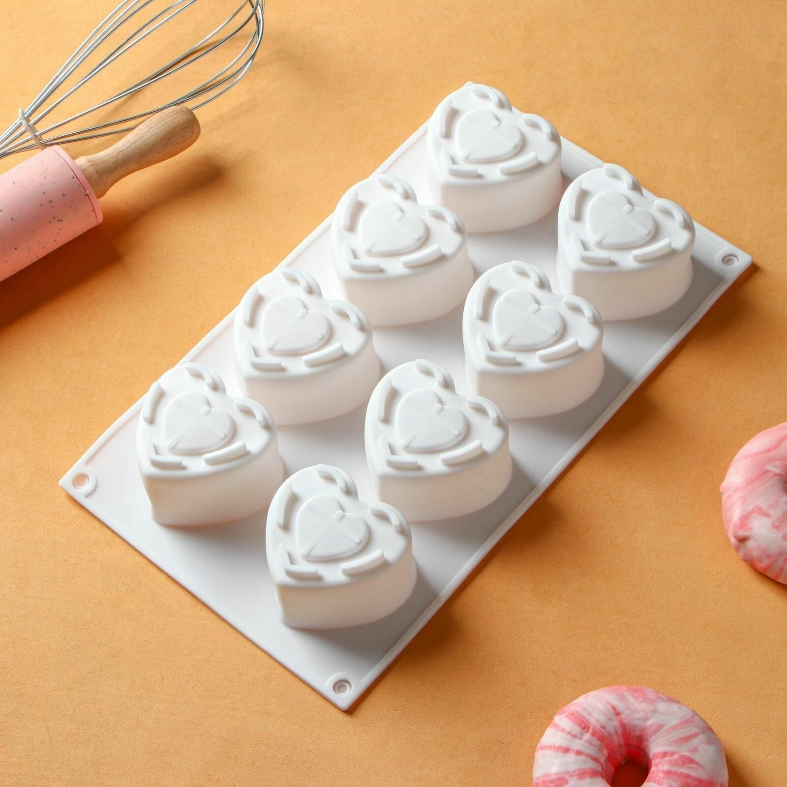 Форма для выпечки ТероПром 1057080 Доляна «Сердце», 21×16 см, 8 ячеек, цвет микс, 1057080