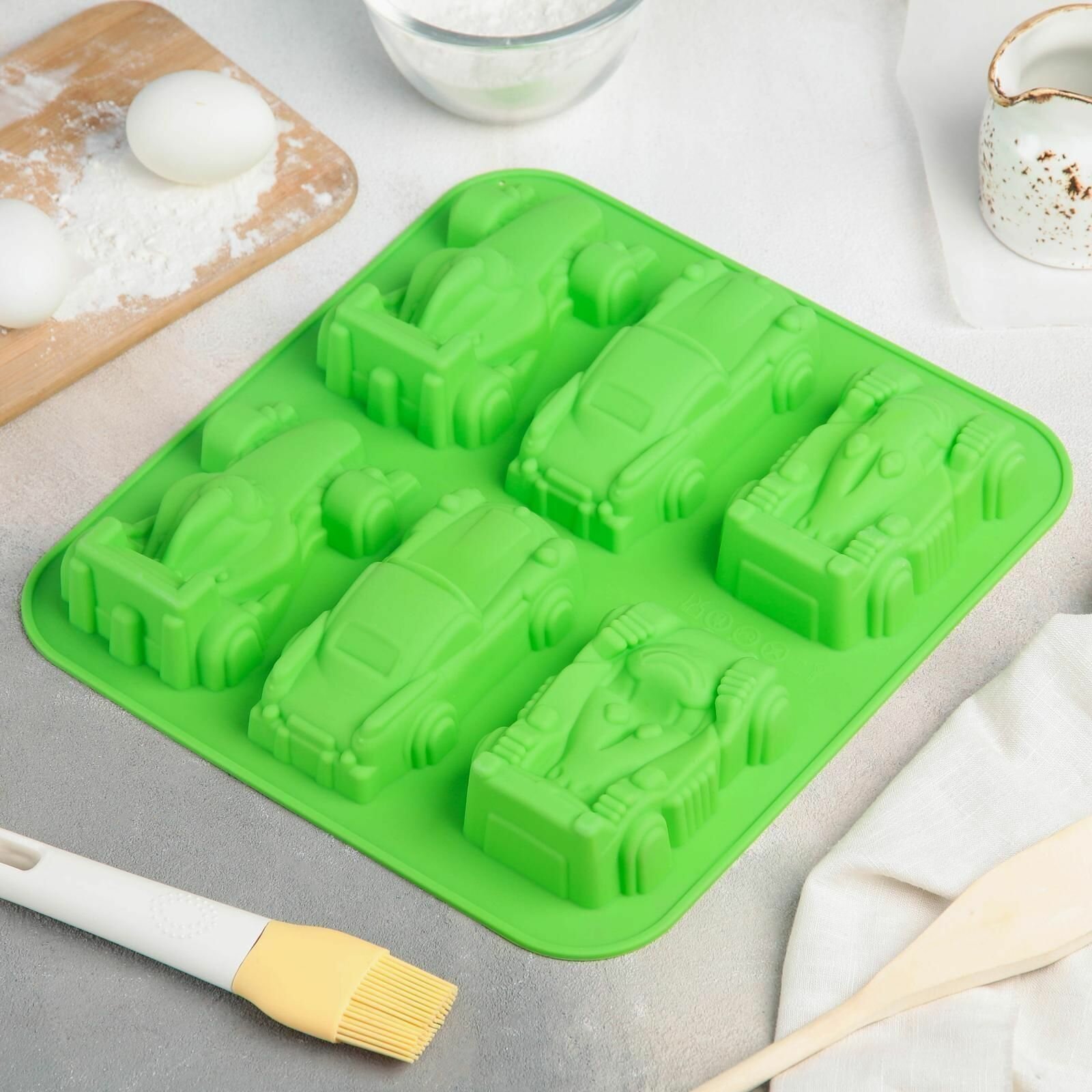 Купить Форма для выпечки силиконовая Гонки, 29,5x27 см, 6 ячеек (11,5x6,5 см)