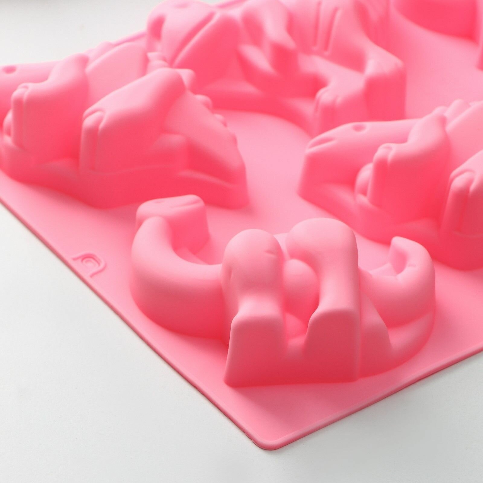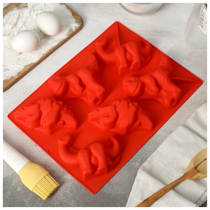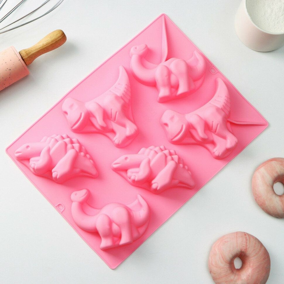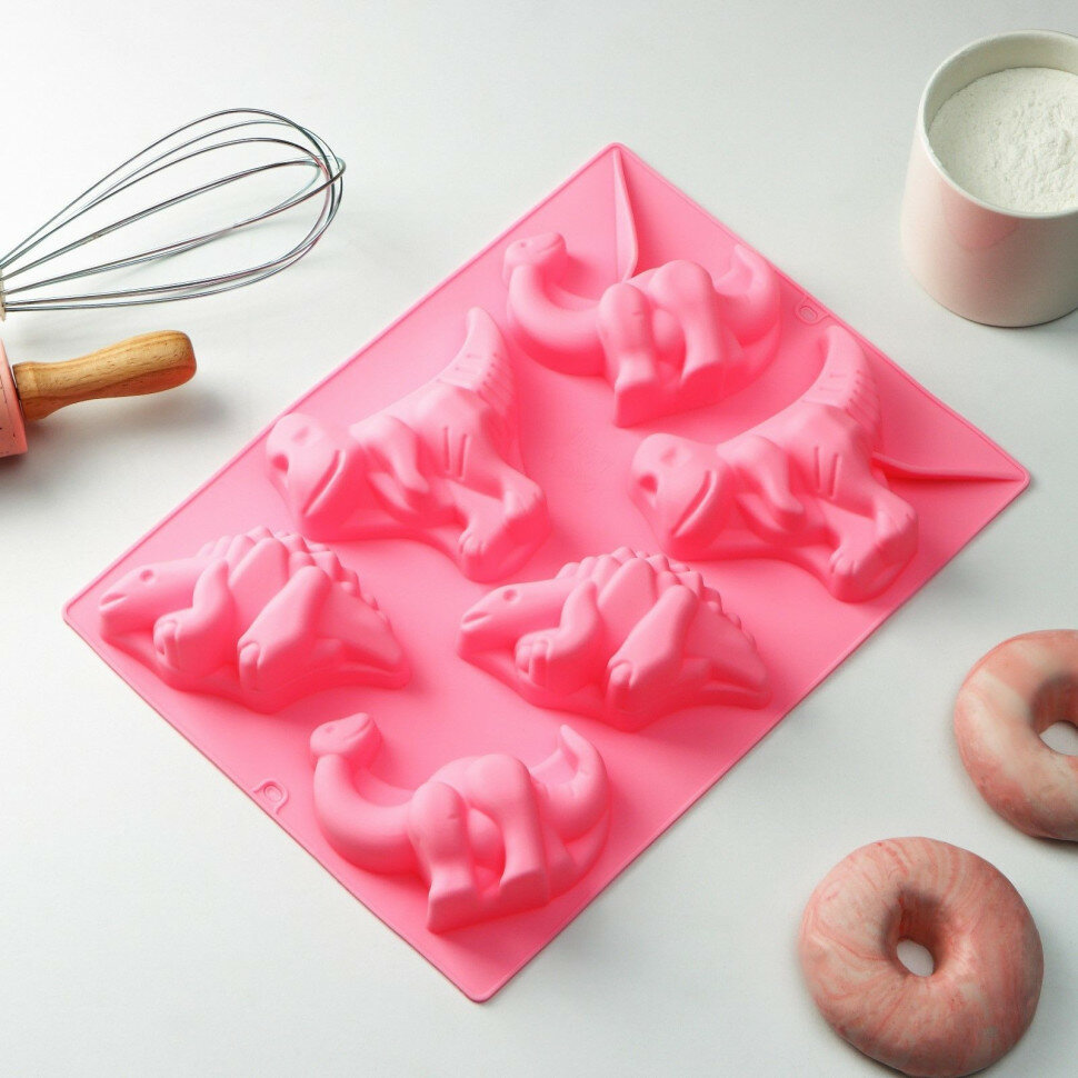 Купить Форма для выпечки Доляна Животные. Динозавры , силикон, 29 21 см, 6 ячеек (10,4 7,2 см), цвет розовый