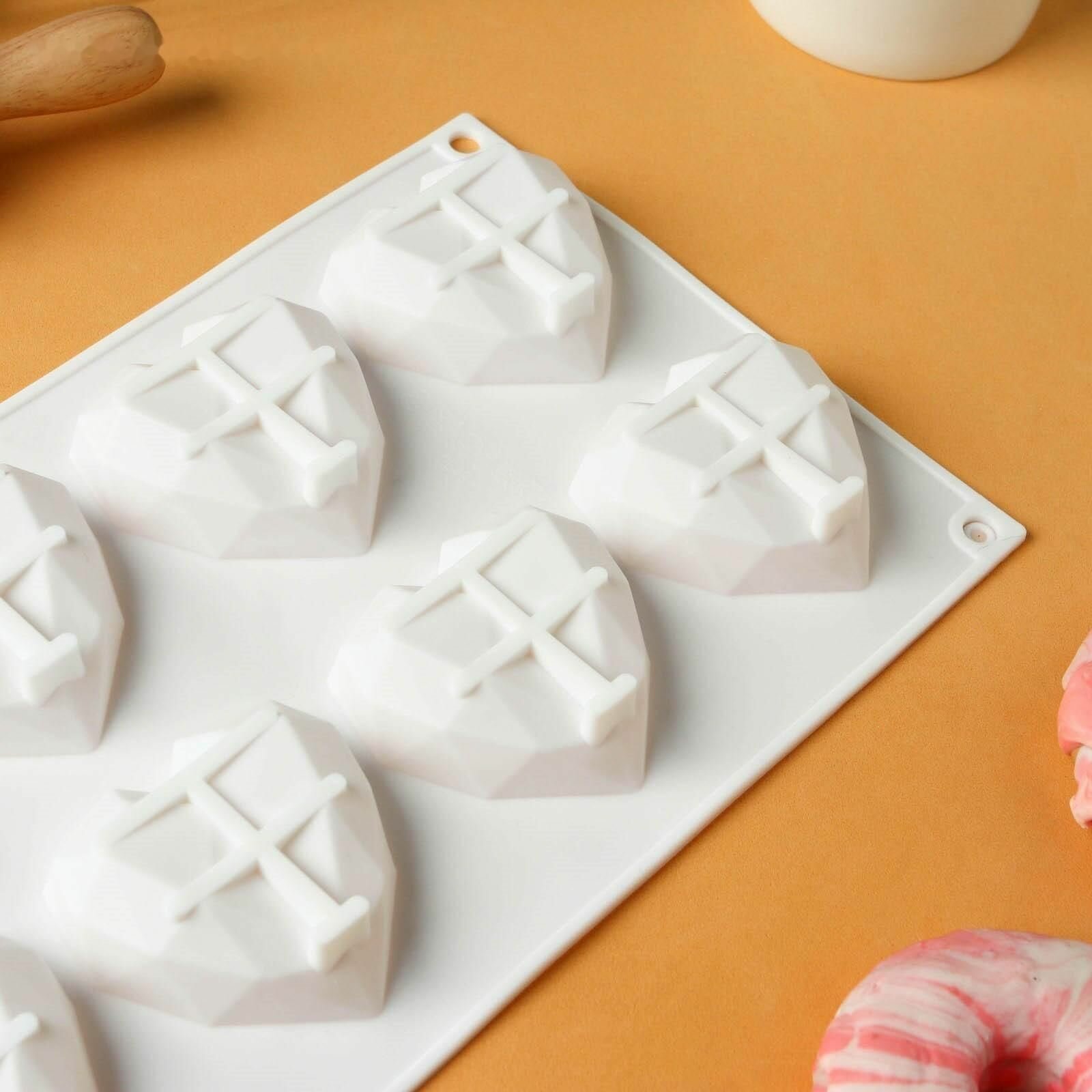 Форма для выпечки Доляна «Бриллиант», силикон, 8 ячеек, 29×17×2,2 см, d=5,8 см, цвет коричневый