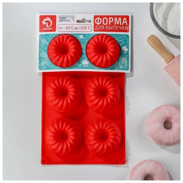 Форма для выпечки силиконовая Доляна «Немецкий кекс», 17×17 см, 4 ячейки, цвет микс