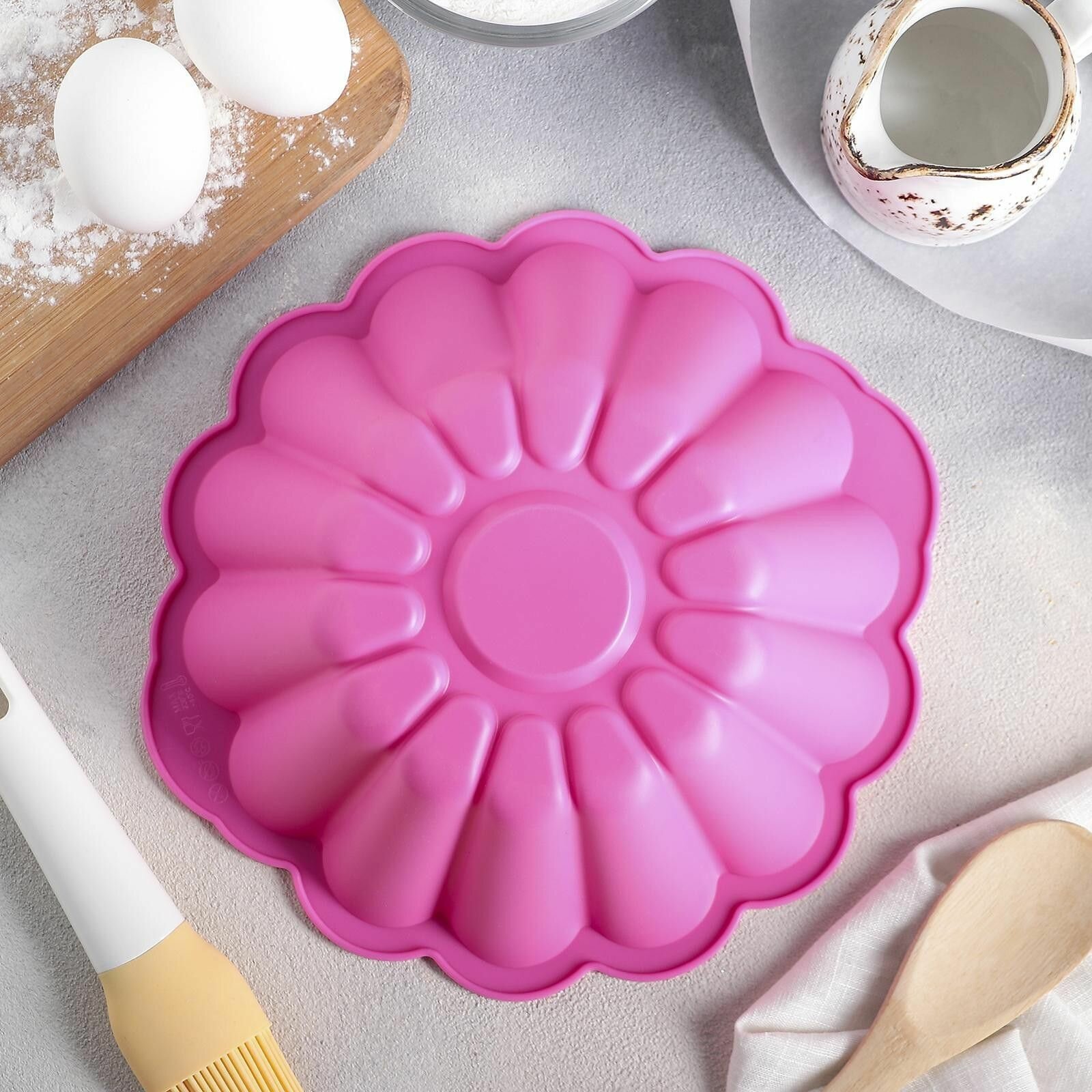 Форма для выпечки силиконовая Доляна «Подсолнух», 29×6 см, с ручками, цвет микс, 762777
