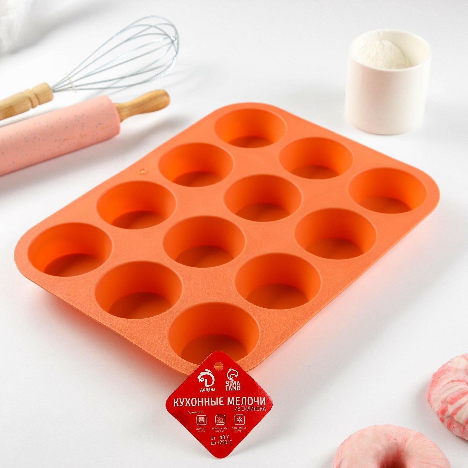 СохранитьФорма силиконовая для выпечки Доляна «Круги», 12 ячеек, 33×25×2,6 см, d=7 см, цвет оранжевый, 9458160 интересное: