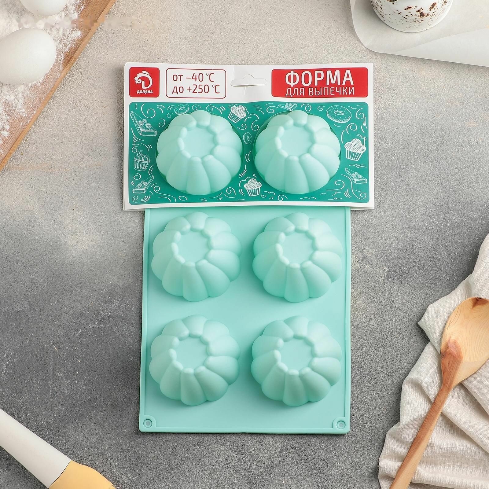 Форма для выпечки силиконовая Доляна «Немецкий кекс», 17×17 см, 4 ячейки, цвет микс