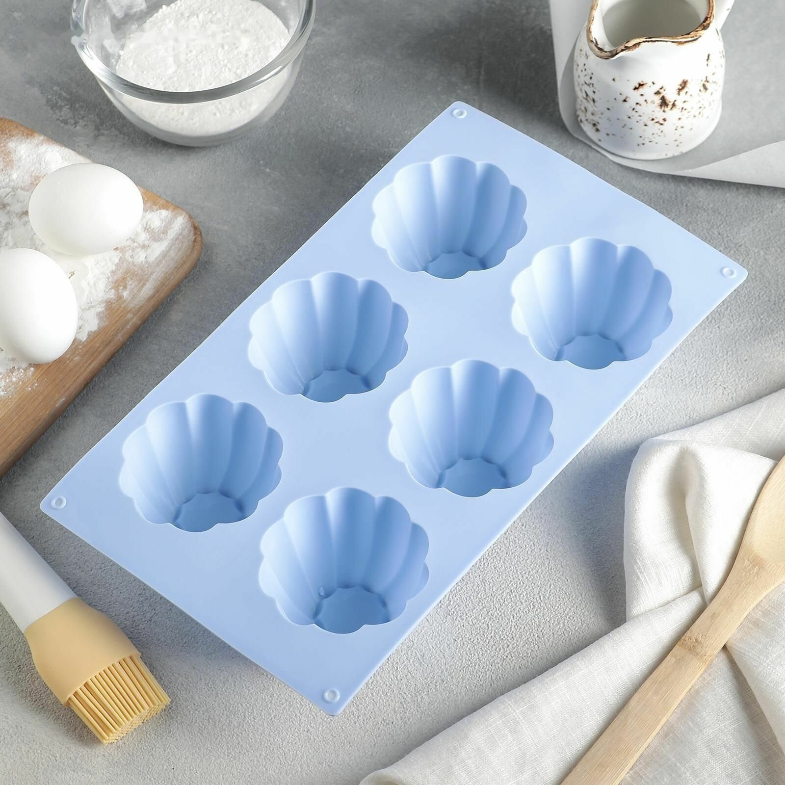 Форма силиконовая для муссовых десертов и выпечки, 30x17,5x4 см, 6 ячеек