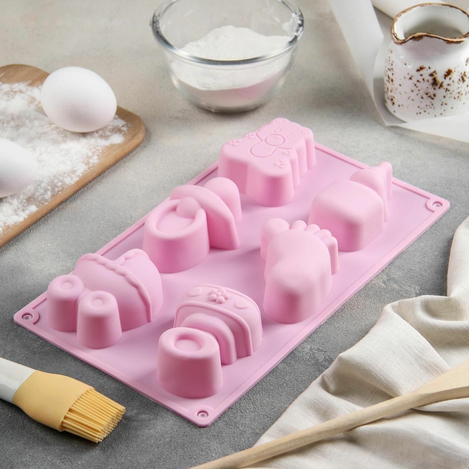 Форма силиконовая для выпечки Доляна «Животные», 20×16 см, 6 ячеек (6,5×4,5 см), цвет микс