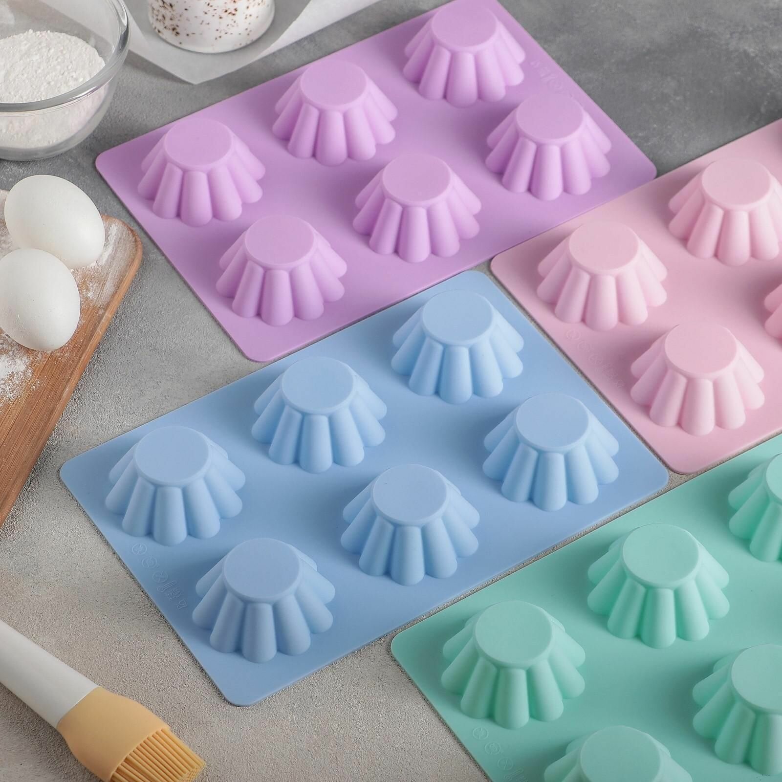 Форма силиконовая для выпечки Доляна «Животные», 20×16 см, 6 ячеек (6,5×4,5 см), цвет микс