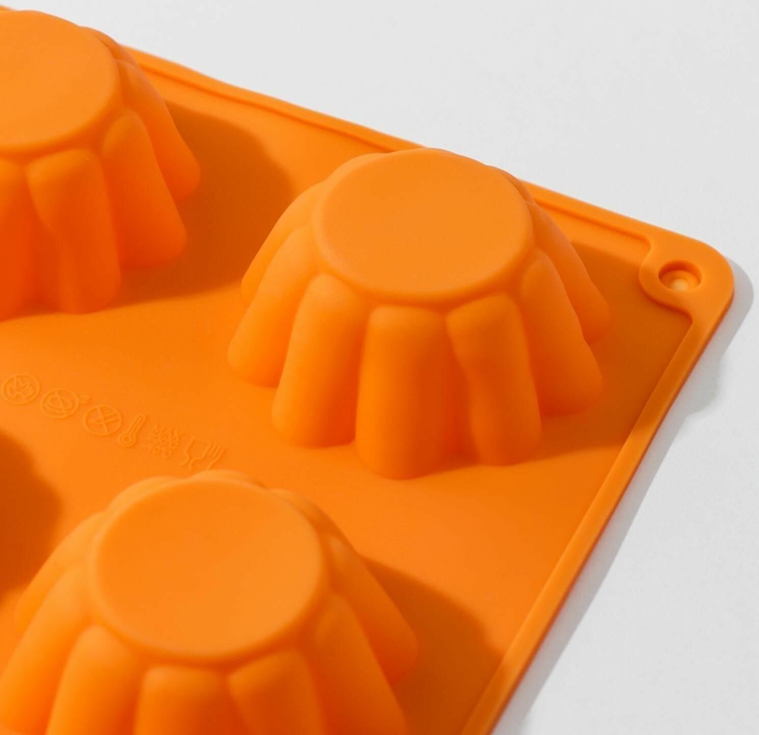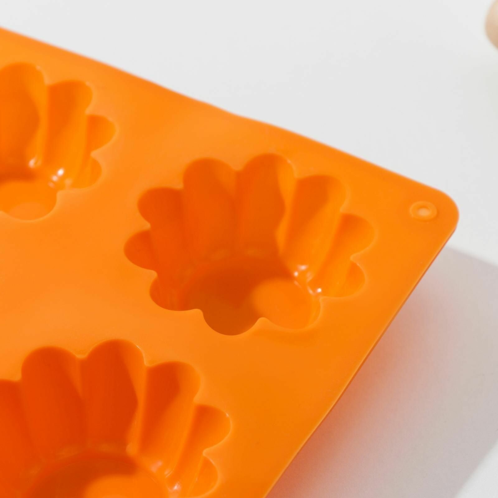 Форма силиконовая для выпечки Доляна Конди , 8 ячеек (d 6 см), 29 17 2,1 см, цвет оранжевый