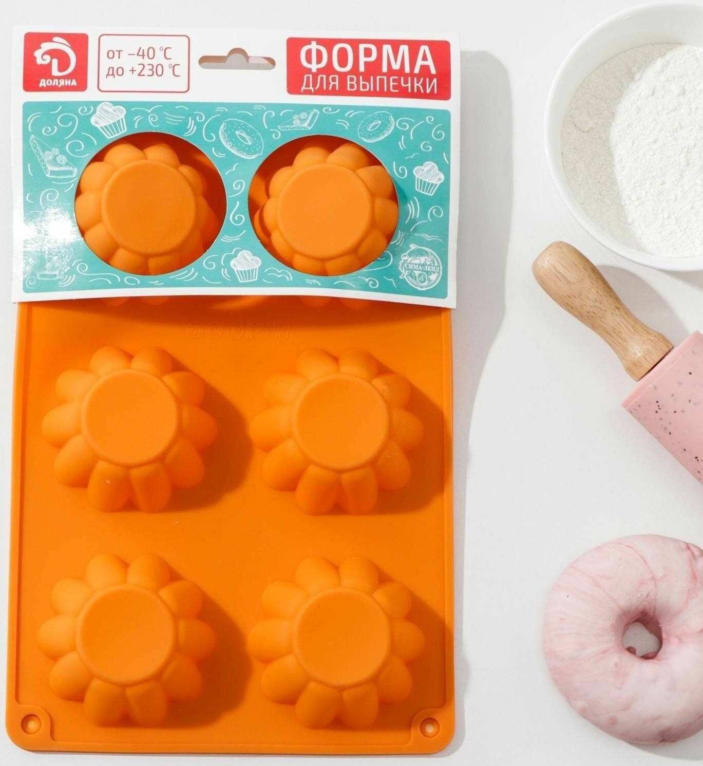 Форма для выпечки силиконовая Доляна «Подсолнух», 29×6 см, с ручками, цвет микс, 762777
