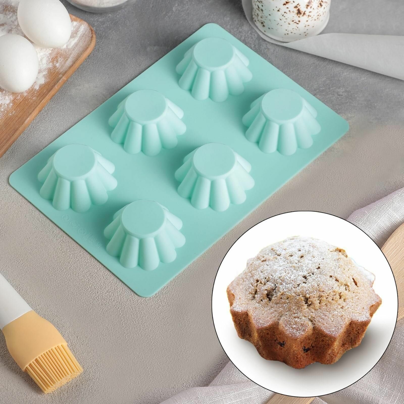 Форма для выпечки силиконовая, 17x27 см, 6 ячеек