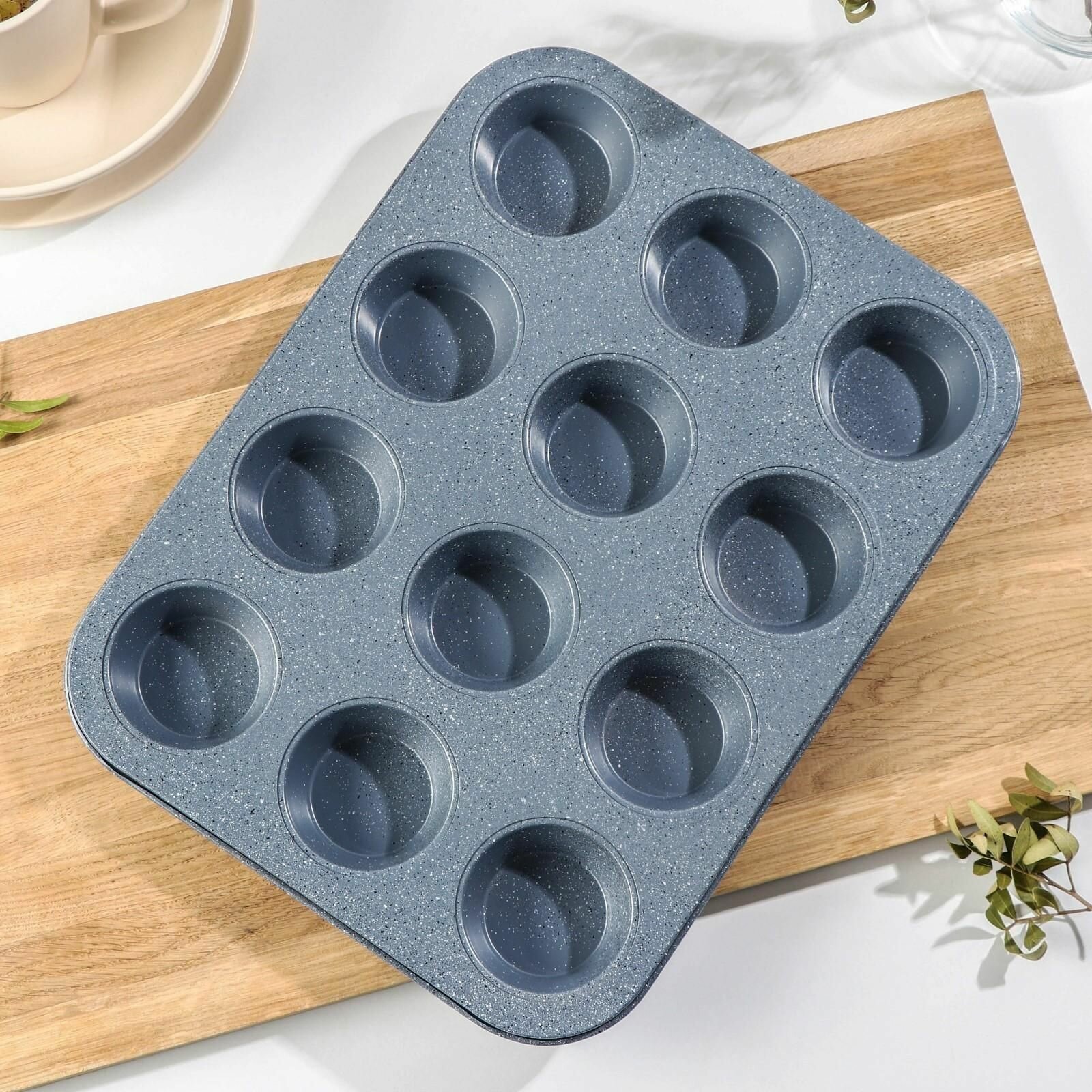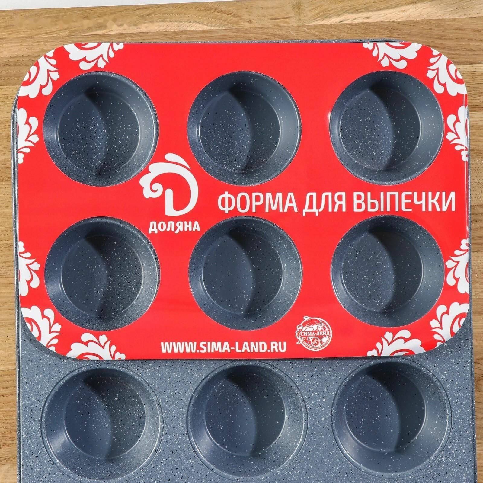 Форма для выпечки Доляна «Круг», 40×28×4 см, 12 ячеек, антипригарное покрытие, цвет чёрный