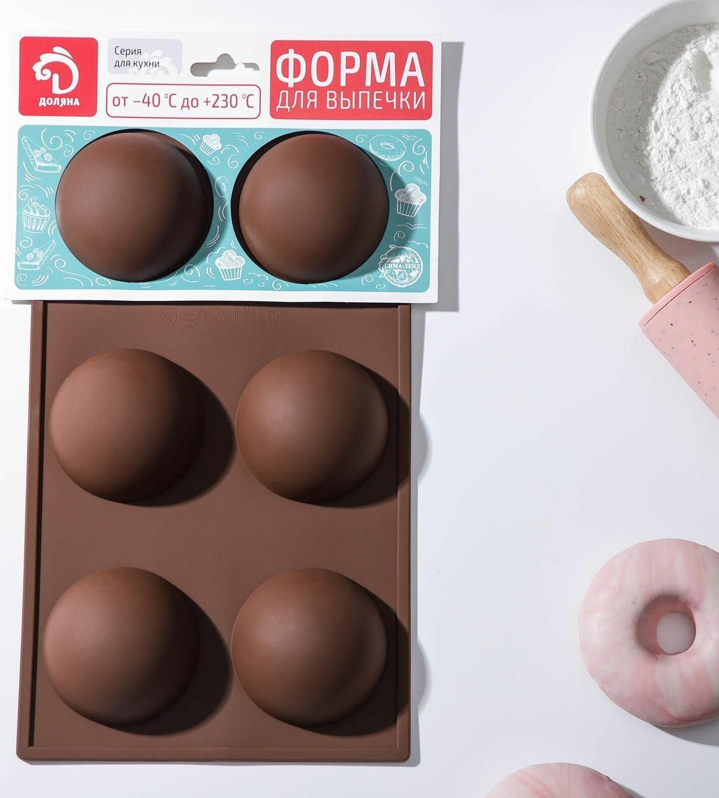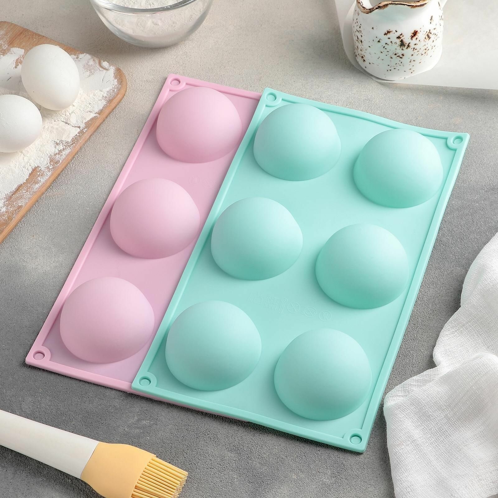 Форма силиконовая для муссовых десертов и выпечки, 30x17,5x4 см, 6 ячеек